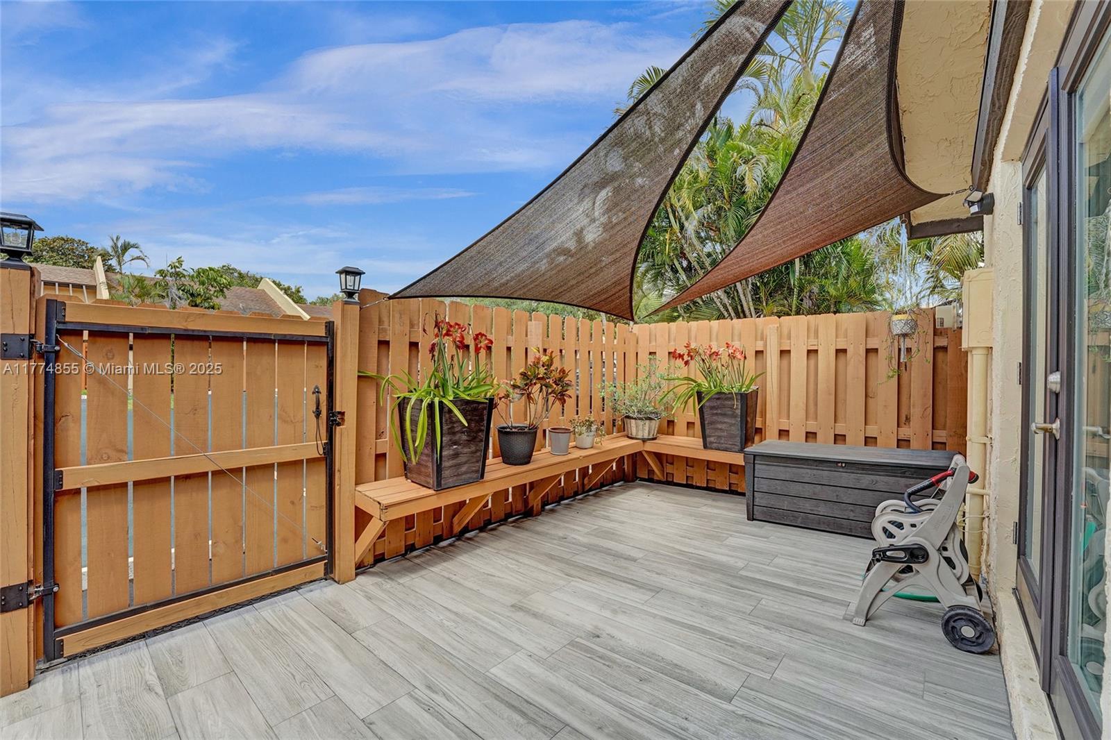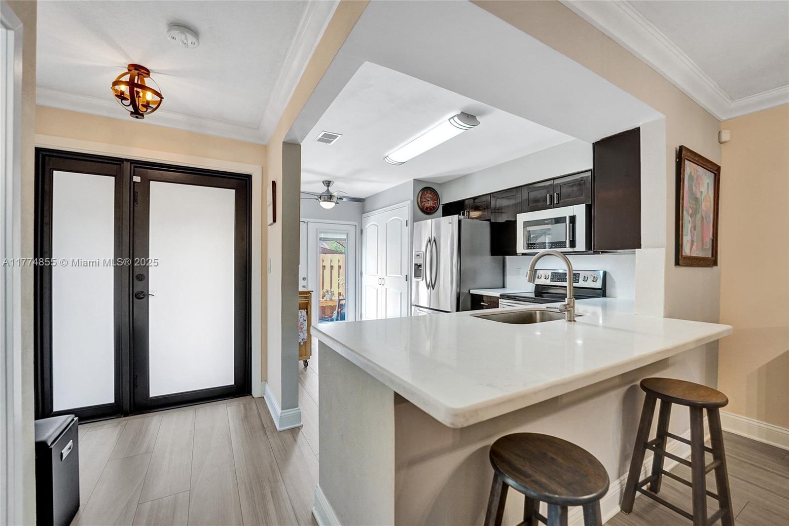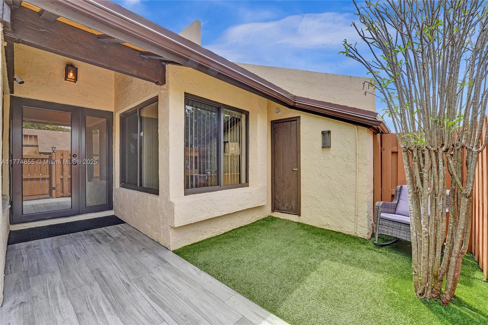 Welcome to this immaculate, move-in ready villa that combines modern updates with comfort and style. Featuring a brand new kitchen with gorgeous cabinetry and stainless steel appliances. The kitchen opens seamlessly into a spacious dining and living room area, highlighted by stunning tiled flooring throughout.This villa is packed with upgrades, including new hurricane impact windows and doors, a brand new roof (2023), new water heater. The home boasts crown molding throughout.The oversized master bedroom is a true retreat, complete with a huge walk-in closet and sliding glass doors that open directly to a private patio and backyard. The private, fenced-in front porch area provides additional seclusion and offers ample room for patio furniture.This home has everything you could ever need.