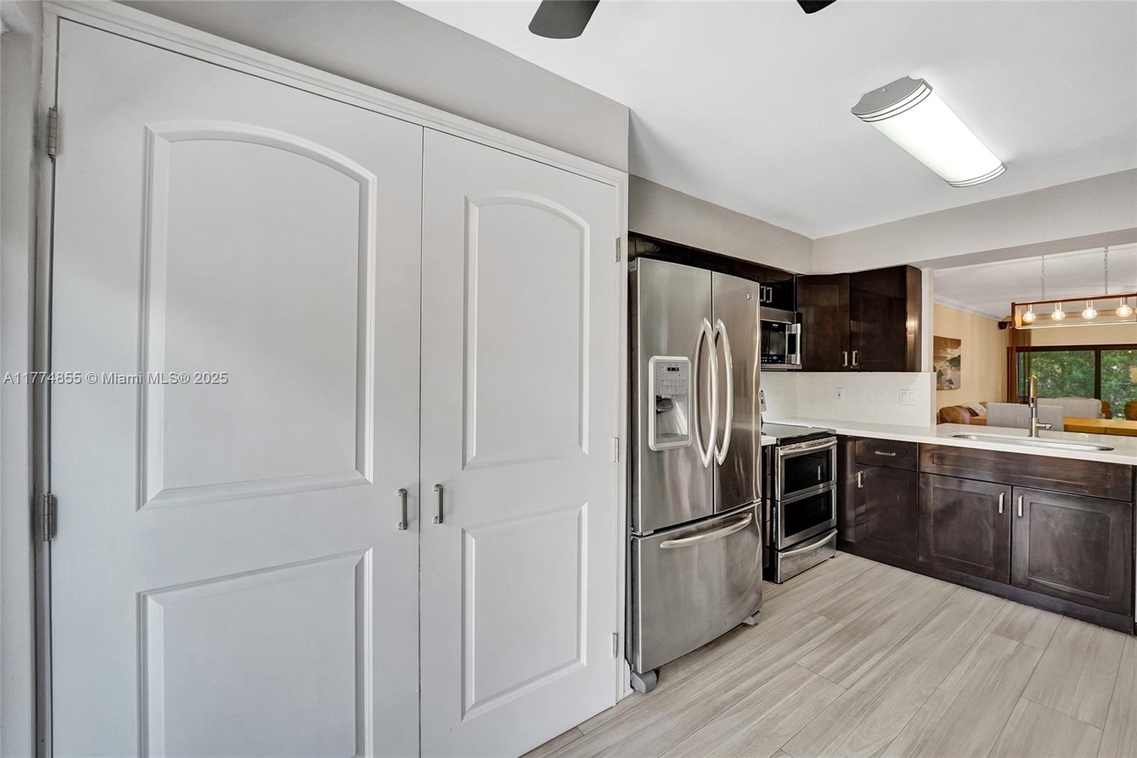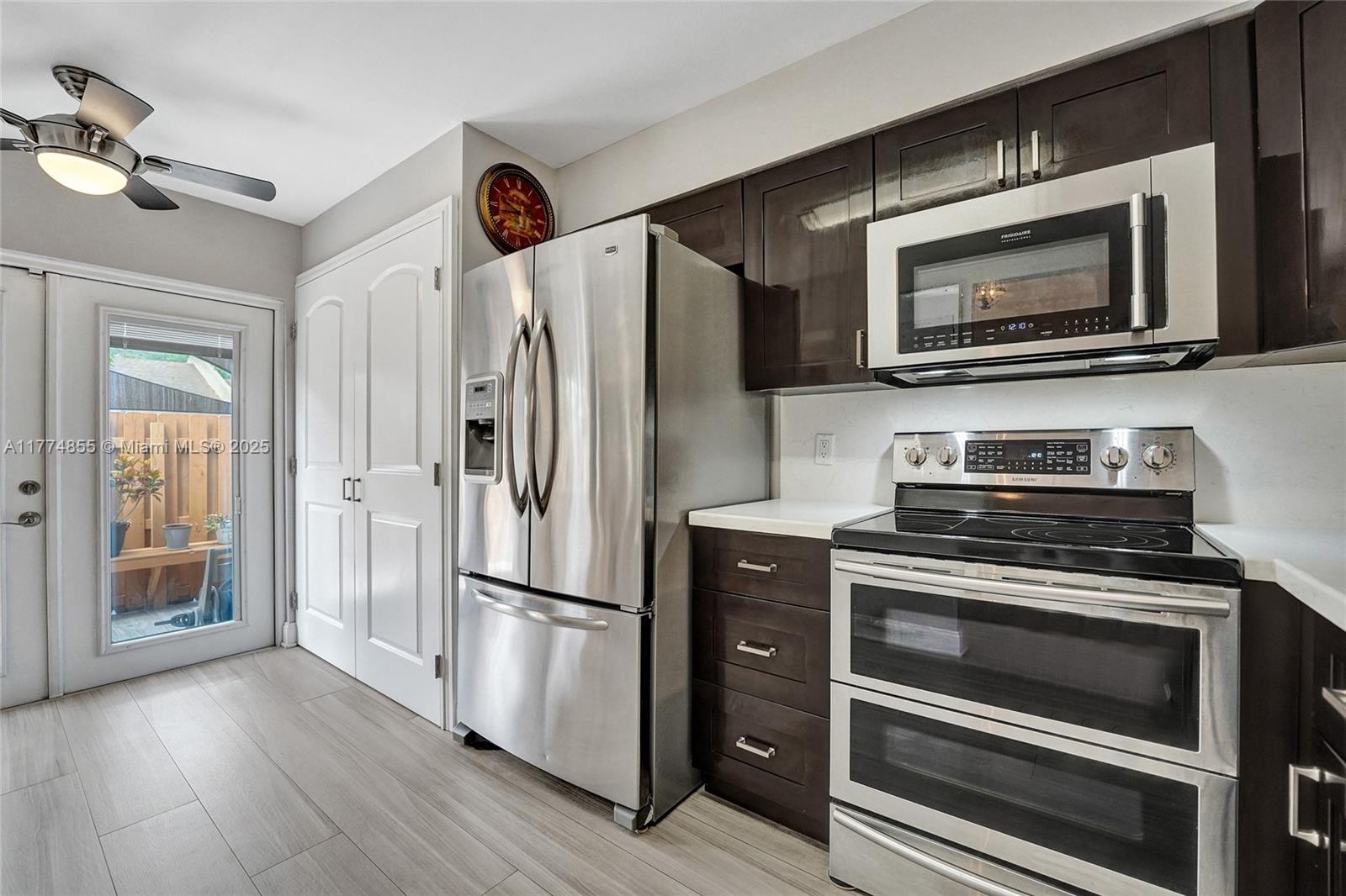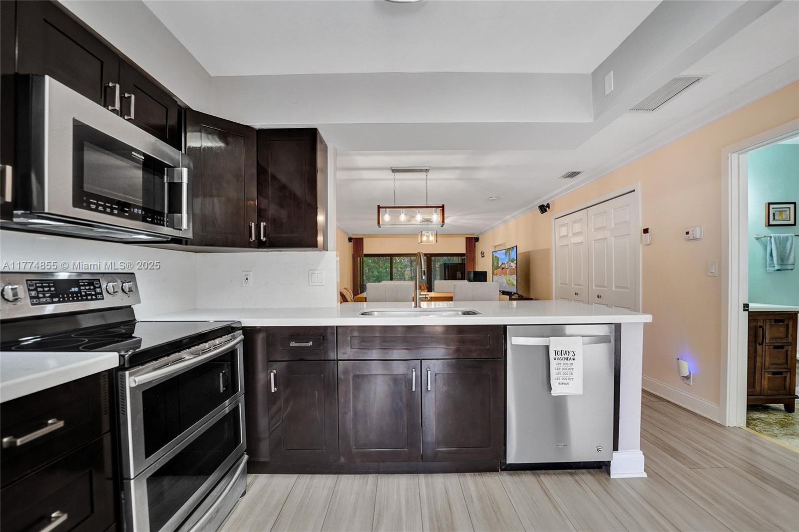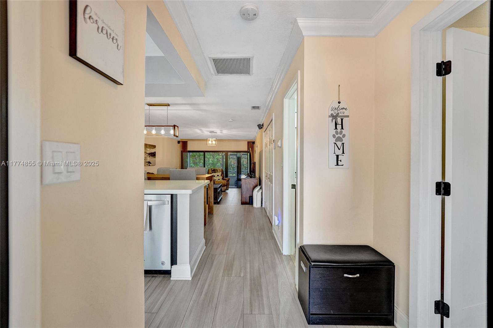 Welcome to this immaculate, move-in ready villa that combines modern updates with comfort and style. Featuring a brand new kitchen with gorgeous cabinetry and stainless steel appliances. The kitchen opens seamlessly into a spacious dining and living room area, highlighted by stunning tiled flooring throughout.This villa is packed with upgrades, including new hurricane impact windows and doors, a brand new roof (2023), new water heater. The home boasts crown molding throughout.The oversized master bedroom is a true retreat, complete with a huge walk-in closet and sliding glass doors that open directly to a private patio and backyard. The private, fenced-in front porch area provides additional seclusion and offers ample room for patio furniture.This home has everything you could ever need.