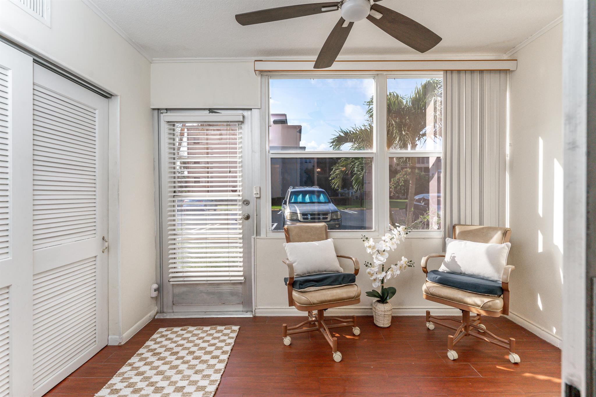 Beautifully maintained 1st floor, 2 bedrooms, 2 full bathrooms, walk in closets, enclosed lanai, kitchen nook, outdoor patio space & more! 1 assigned parking spot & a ton of guest/visitor parking right outside your front & back doors. 2nd Owner(original was Family), meticulously maintained & cared for. Washer & Dryer allowed in 1st floor units. Laundry rooms on 2nd, 3rd & 4th floors(elevators to use of course)! 55 & up community. Tile in living areas, new laminate in bedrooms. Amenities included but not limited to, 2 pristine swimming pools, Gym, Rec Center! Close to Beautiful South Florida Beaches, Shopping, Grocery Stores & Malls. Condo fee includes water, cable, internet, community maintenance & pest control! Lanaia & bedrooms have impact windows.