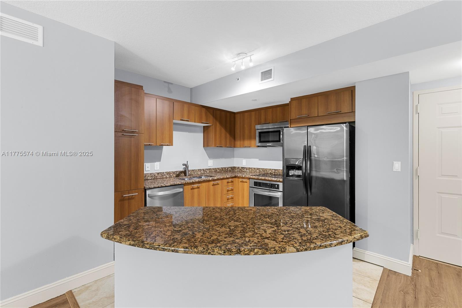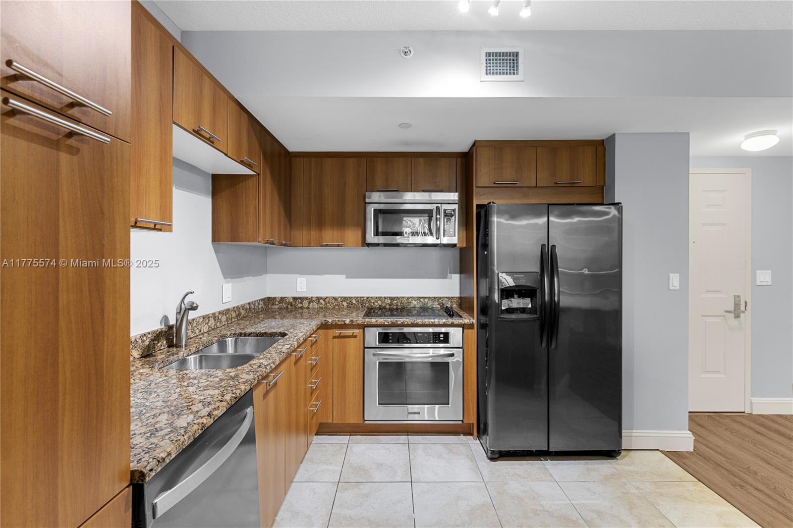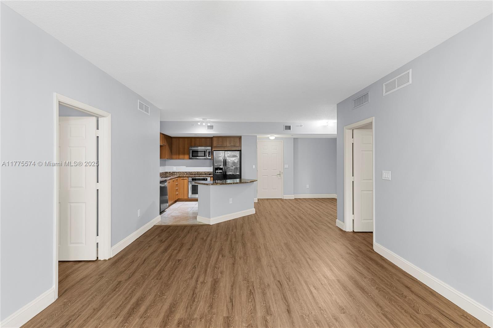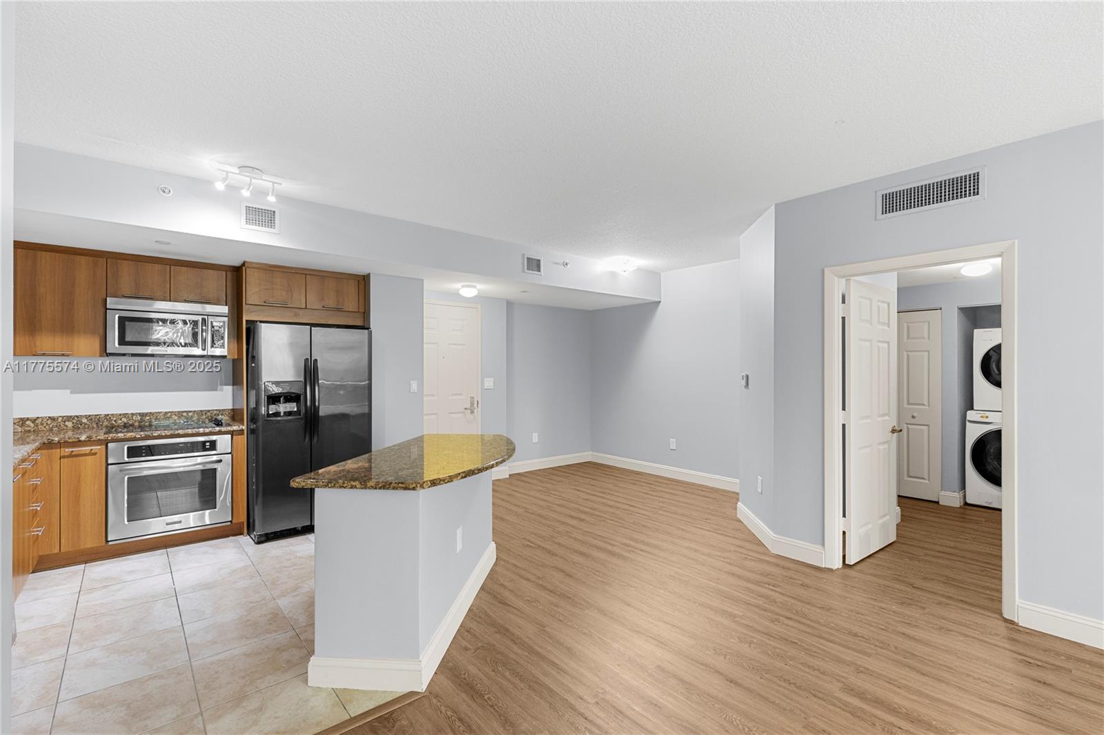 This stunning 2-bedroom, 2-bathroom condo offers modern living with brand-new laminate floors, a luxurious master bathroom featuring a marble shower and soaking tub, and a sleek kitchen with granite countertops and stainless steel appliances. Enjoy the convenience of an in-unit washer/dryer, smart key FOB entry, and two assigned parking spaces. The resort-style amenities include a tropical heated pool, Jacuzzi, fitness center, dry sauna, and a residents’ clubroom. With 24-hour concierge, high-tech cameras, and high-impact doors/windows, safety is a priority. Ideally located within walking distance to supermarkets, restaurants, a hospital, and places of worship, this home combines comfort and convenience. Plus, internet, cable, and water are included.