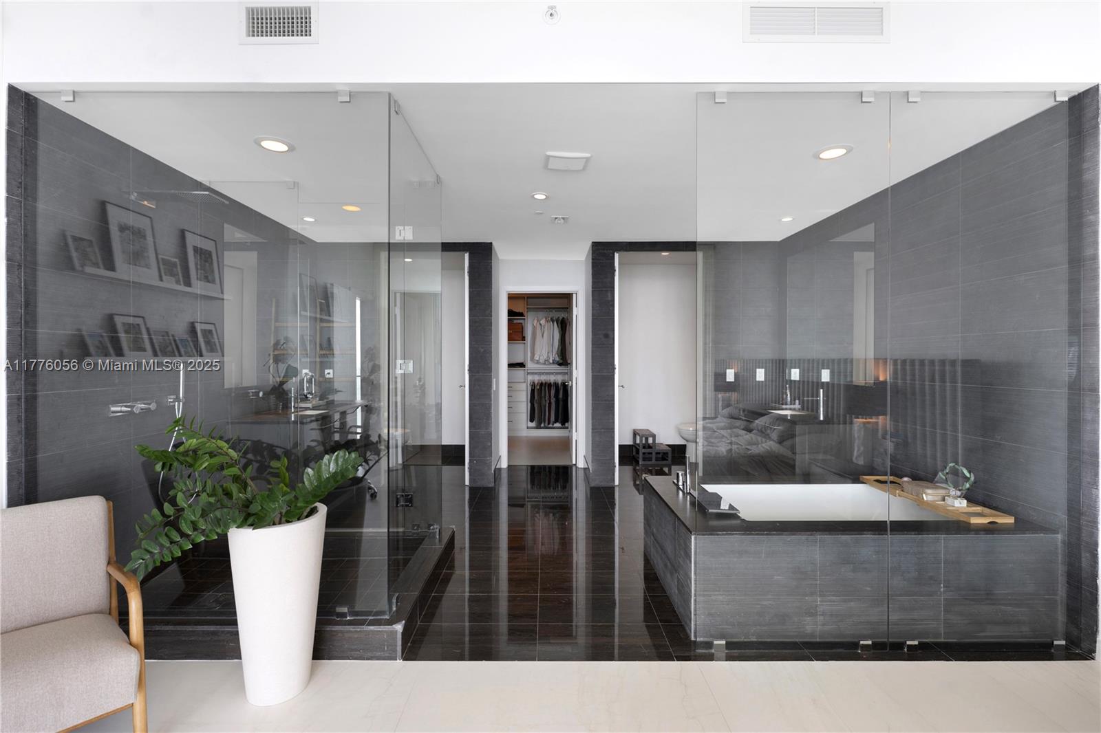 Tastefully furnished & renovated 4 bed, 5.5 bath penthouse with stunning 50th floor, direct bay & ocean views from every room. Floor-to-ceiling windows & over 700 sq ft of balcony space with east and west exposures. Top-of-the-line appliances, wood cabinetry, refined window treatments, designer walk-in closets, state-of-the-art water filtration system & private elevator foyer. 2 side-by-side parking spaces on the 3rd floor. One Paraiso is a luxury, waterfront condominium with resort style amenities: An opulent spa with multiple massage rooms, saunas & steam rooms, multiple pools & hot tubs, fitness center, cinema, piano room, billiards room, business center, marina, tennis courts, summer kitchen, free valet parking & much more. Steps away from the Design District, Wynwood & Midtown.
