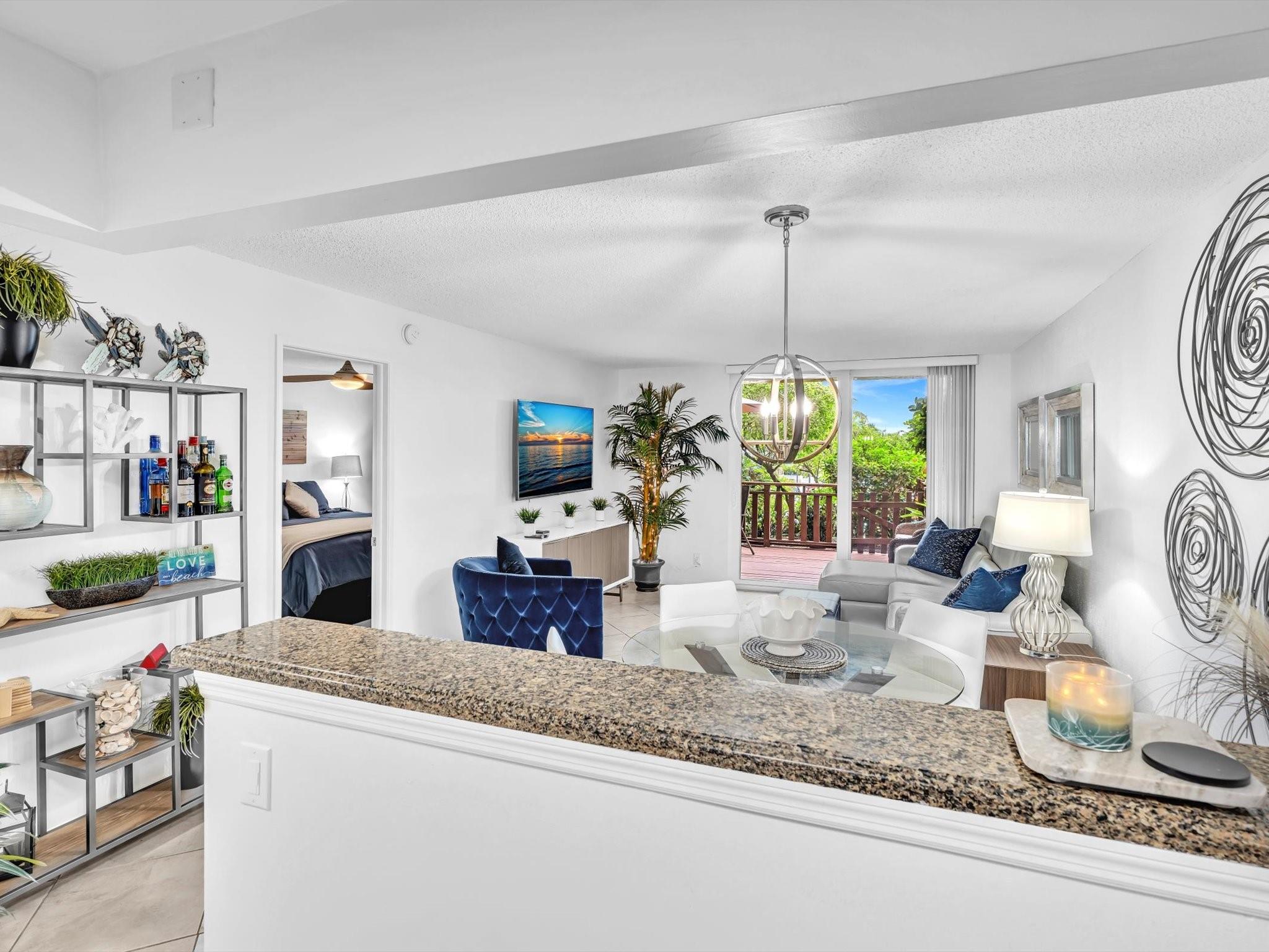 STOP what you're doing NOW! Look no further than this completely RENOVATED, beautifully FURNISHED & equipped 1-bedroom condo. I challenge you to find me a more well-maintained & professionally designed condo anywhere in the Tri-County area at this price point...it doesn't exist. You'll fall in LOVE w/ the oversized walk-out WOODEN DECK situated in a private tropical oasis overlooking the pool area, dockage, & intersecting canals. This condo is the perfect second home get-away or short-term rental investment property. The liberal rental policy (12 x per year & minimum 30 days) gives you maximum flexibility to make money while it's not in use, if that's what you choose. Rio Espana has a resort style heated pool, NEW HOT-TUB, Private BEACH access, and is perfectly located to everything.