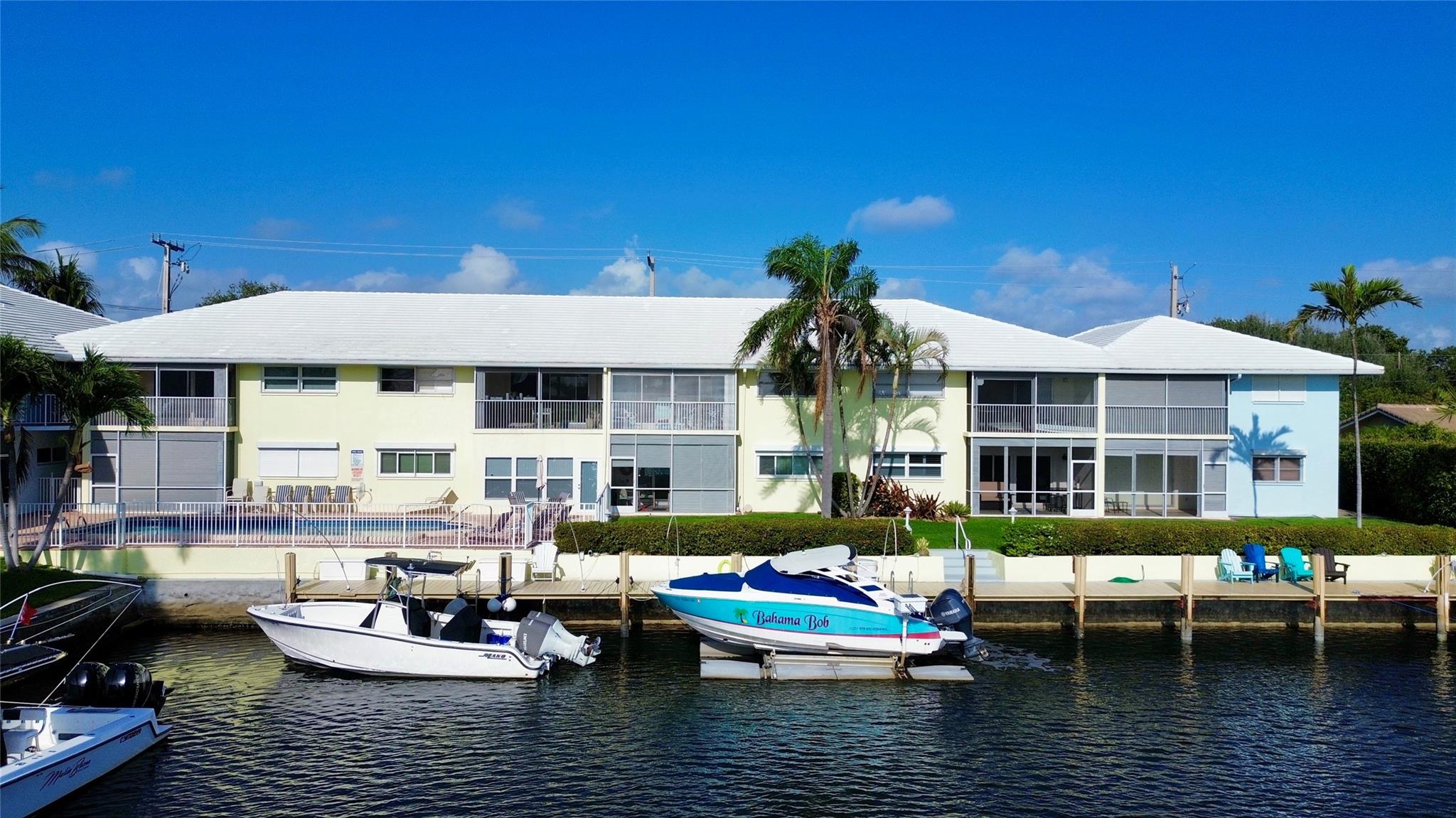 Great canal views from large 2nd floor screened balcony and Master Bedroom in this unit located in the heart of prestigious Lighthouse Point. BRAND NEW impact windows and doors. Two blocks to shopping, restaurants, post office, police & fire, parks and library. Furnished. Master bath recently updated. Dog or cat under 10 pounds. Heated Pool. This community does not allow rentals (no transient rentals-value maintained) Community has a 55+ age requirement. Maintenance includes cable, water and much more.