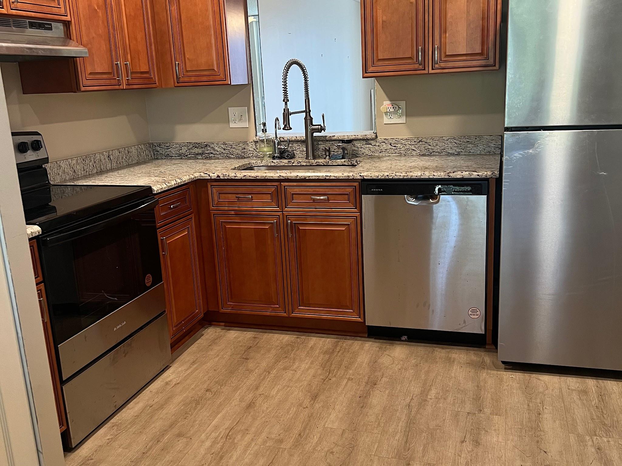 Charming, Turn Key 2BR/2BA Water View Condo in Palm Lakes 55+ Community. This move-in-ready condo offers an Updated Kitchen, granite countertops, newer cabinets, brand-new appliances, and an in-unit washer and dryer. Stylish flooring runs throughout the spacious layout. Relax on the oversized balcony with serene water views accessible from both the living room and the Large primary suite. The primary bedroom features a walk-in closet and a fully renovated en-suite with a walk-in shower. The second bedroom is steps from an updated guest bath. Plus, there’s generous exterior storage. Palm Lakes is an active 55+ community with two pools, a clubhouse, tennis courts, and more. Close to shopping, Pharmacy, dining, hospitals, and major highways. Just 10 miles from the beach
