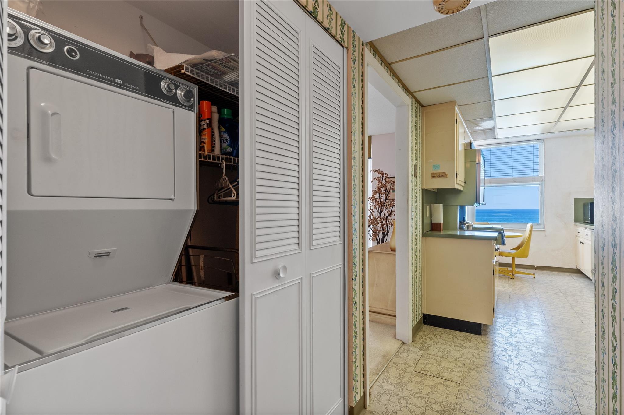 Make this condo into your dream beachfront home. Spacious one-bedroom, one-and-a-half-bathroom residence offers spectacular views of the ocean and intracoastal, framed by floor-to-ceiling windows that fill the space with natural light. Step onto your large private balcony and enjoy the ocean views. Spacious galley kitchen with ocean views. Separate washer and dryer room. This versatile unit can easily be transformed into a one-bedroom with a large den, allowing for a full bathroom conversion for the half bathroom. Enjoy an array of building amenities, including a large pool, fitness center, and a beautiful courtyard, and more. Don’t miss the chance to own this exceptional property that combines luxury living with the serenity of oceanfront views!