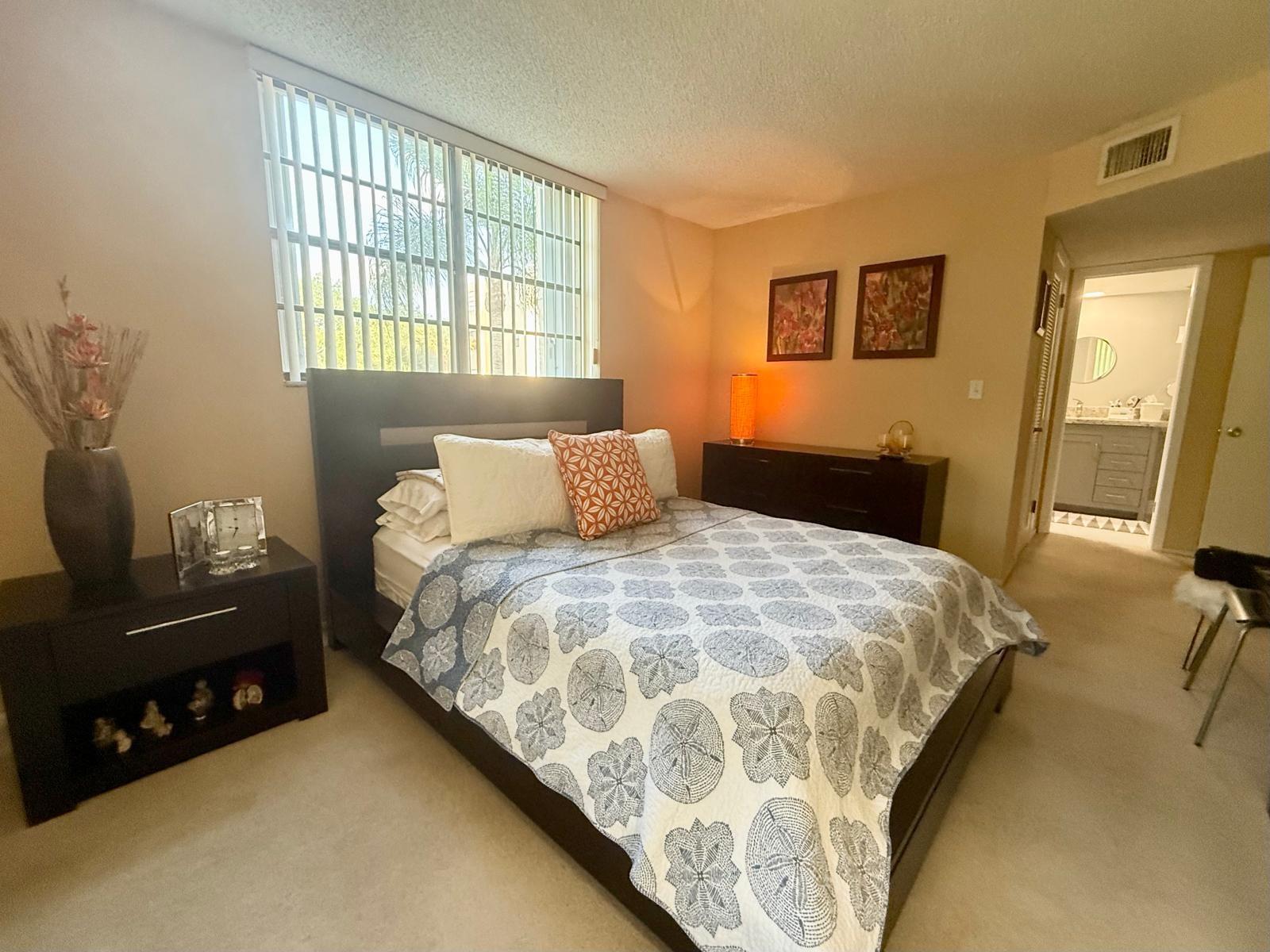 Spacious 2 BED/2BA split floor plan with, all rooms have access to a large balcony with a side view of the lake. This unit offers an updated kitchen and bathrooms, along with brand-new appliances, including a washer and dryer. The roof was replaced in 2025. Ideally located near major highways for easy access and convenience. The community features exceptional amenities such as a tennis court, Olympic-sized pool, clubhouse, and gym, all supporting an active lifestyle.