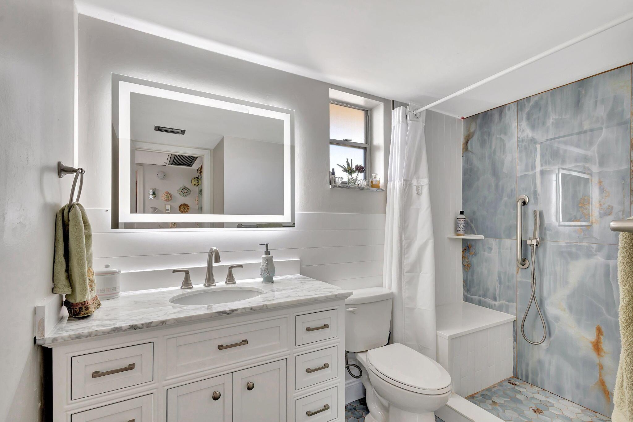 MONTHLY FEE WAS JUST REDUCED BY OVER $200/MONTH TO $619.18!!! A brand-new bathroom, consistent flooring & water view distinguish this unit at Lake Clarke Gardens. An LED-framed mirror & new lighting fixtures modernize the floor plan. Access the balcony from both the bedroom & living room. The location along the perimeter of the community provides a serene canal view & quietude. Stainless-steel appliances in the kitchen. This unit has full storm protection with accordion shutters & the electrical panel has been upgraded.Lake Clarke Gardens has 2 heated pools flanking a massive community lake. The amenities by the main pool include a community room, theater, putting green, shuffleboard & fitness center. Management is on site. There are courtesy buses. This is a very active community with
