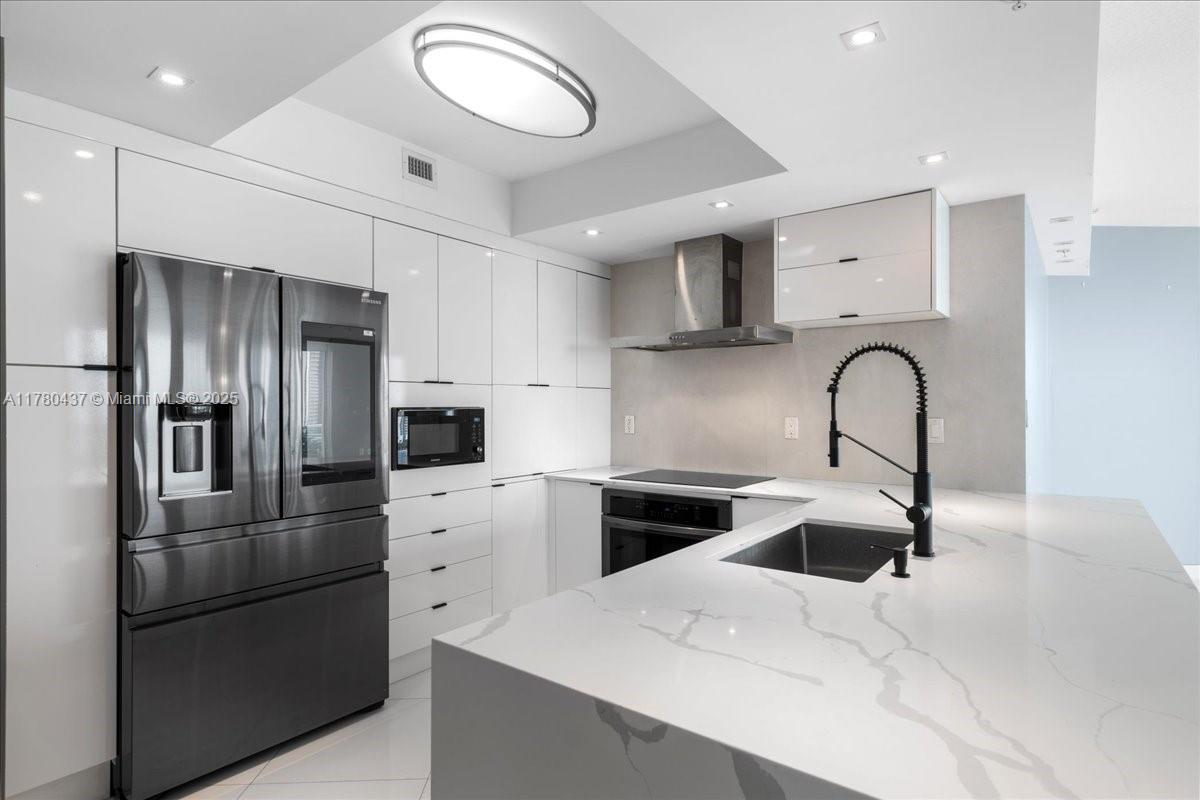 BEST DEAL AT ST TROPEZ 2. Beautiful Ocean views from this large 3 full bedroom condominium in Sunny Isles Beach with new kitchen and new appliances. Prime location right across from the ocean in a full service building. Swimming pool, gym, security, coffee shops and many retail shops for your convenience. City park being built across the boulevard, pier with restaurant steps away on one of the most prestigious beaches in South Florida. Beautiful Terrace with amazing views. Condo has an agreement with Sole on the ocean for beach access, chairs and umbrella.