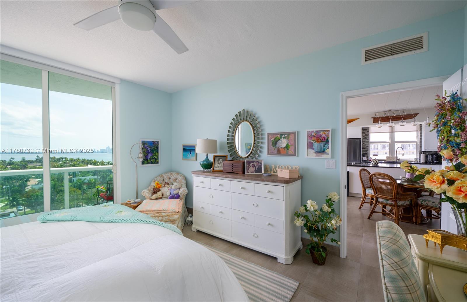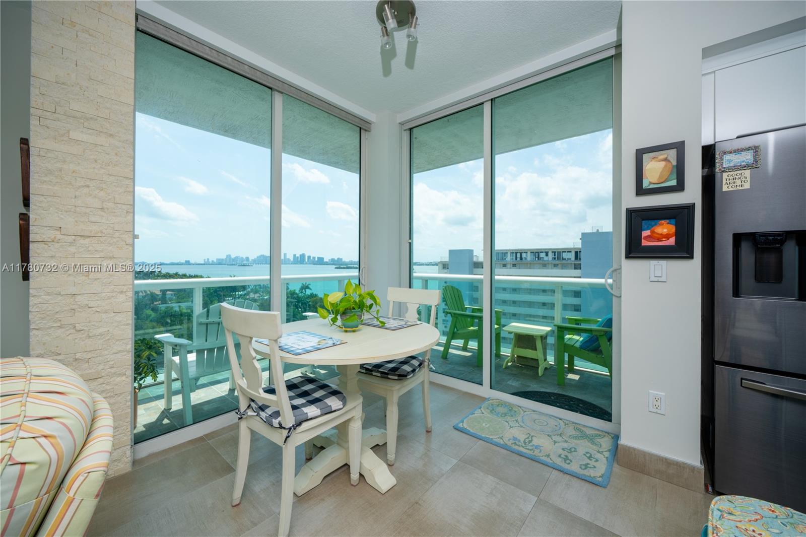 Accepting backup offers. Luxury Waterfront Corner Unit | Enjoy breathtaking Intracoastal and skyline views from this 3-bed, 2-bath corner unit with floor-to-ceiling impact windows and 2 private balconies. Features include an upgraded kitchen with granite counters, stainless steel appliances, wine cooler, and modern cabinetry. Spacious living area with remote-control shades, new tankless water heater, and ceiling fans in every room. Guest room has a custom Murphy bed. Includes 2 garage spaces + unlimited valet. Direct bay access for kayaking and paddleboarding, plus free storage for bikes and gear. Resort-style amenities: 2 pools, spa, gym, sauna, 24-hr security, concierge, and more. Located in booming North Bay Village, undergoing a $2B transformation—don’t miss this rare opportunity!
