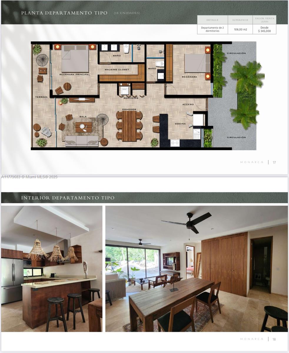 Stunning Apartments of 2/2 in Tulum’s Best Area. Located in a prime, gated community with 24/7 security and controlled access, just 5 minutes by car from Tulum’s most beautiful beaches. Each unit features air conditioning, elegant finishes, marble floors,custom wood closets and bathroom vanities, electric water heaters, modern one-piece toilets, and electric cooktops.Resort-style amenities include a swimming pool, palapa bar with restrooms, hammock area, grill lounge, holistic center, massage room, yoga space, gym, and more. Situated in one of the top tourist destinations in the Riviera Maya, these apartments have high rental demand through platforms condo-hotel operators, making them an excellent source of income. Move-in ready.Only 6 Units Available. For More info contact Listing Agent