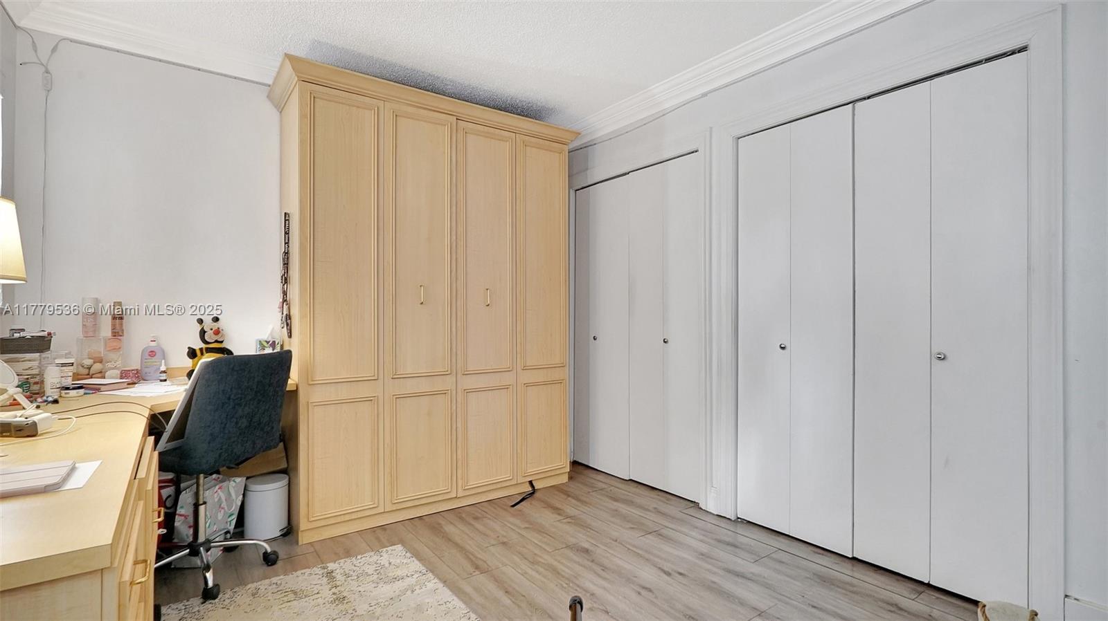 This spacious Upgraded 2BR, 2BA condo in a sought-after 55+ community features a bright, open living area with double ceiling sliders leading to a large screened-in patio. The upgraded kitchen boasts stainless steel appliances, an extra-large double fridge, plenty of cabinet space, Quartz countertops, & eating space. Both bathrooms have been remodeled—one with a tub and the other with a shower & dual sinks. Laminate tile floors & crown molding add to the appeal. Tons of closet space throughout & additional storage available. Enjoy amenities like a fitness center, clubhouse, pool, & common laundry. Ideally located just 10 minutes from the beach & close to Gulfstream racetrack & casino, Aventura Mall, restaurants, supermarkets, and hospitals.