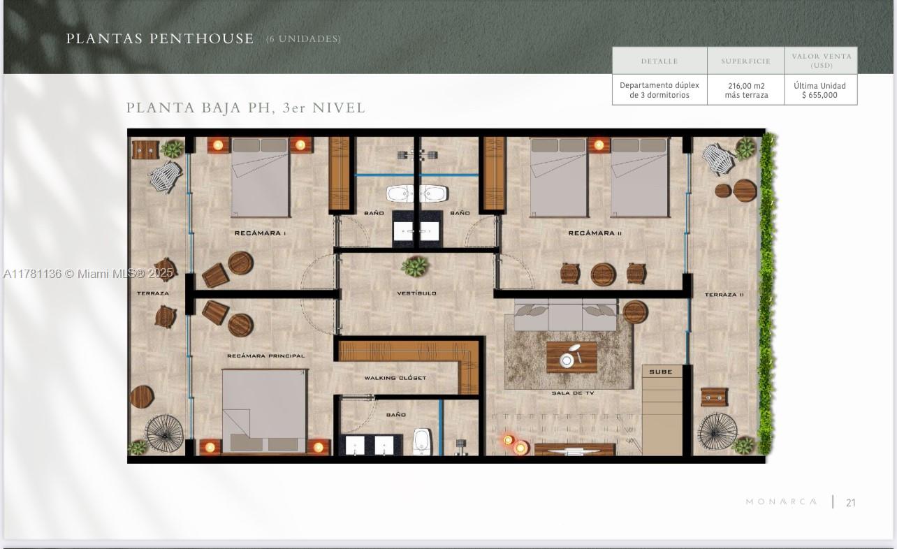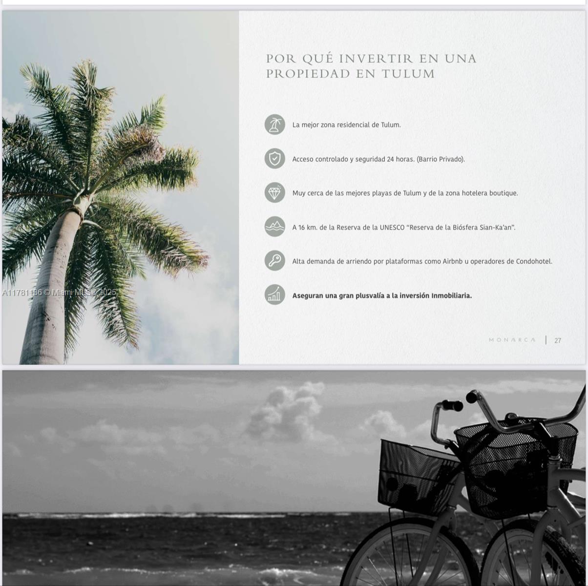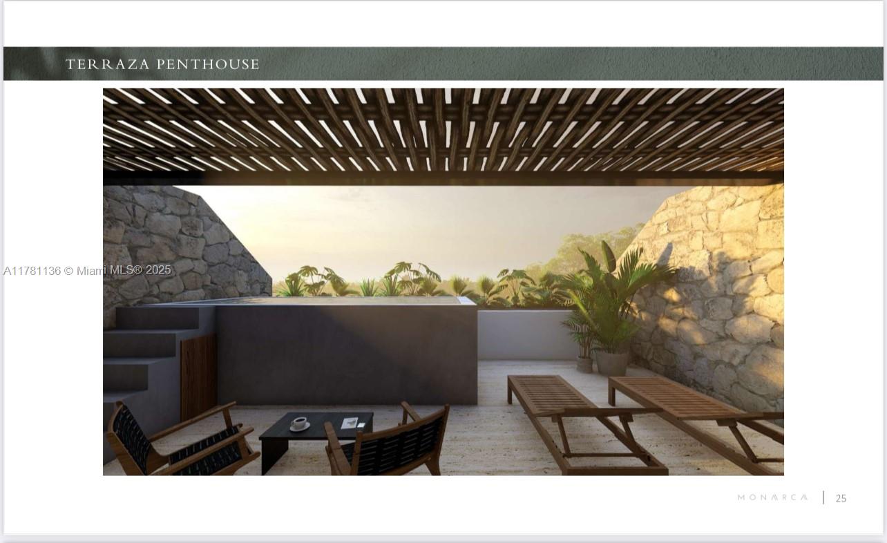 Stunning Penthouse of 3/3 with private pool in the terrace. Located in a prime, gated community with 24/7 security and controlled access, just 5 minutes by car from Tulum’s most beautiful beaches. Each unit features air conditioning, elegant finishes, marble floors,custom wood closets and bathroom vanities, electric water heaters, modern one-piece toilets, and electric cooktops.Resort-style amenities include a swimming pool, palapa bar with restrooms, hammock area, grill lounge, holistic center, massage room, yoga space, gym, and more. Situated in one of the top tourist destinations in the Riviera Maya, these apartments have high rental demand through platforms condo-hotel operators, making them an excellent source of income. Move-in ready.Only 2 Units left available.