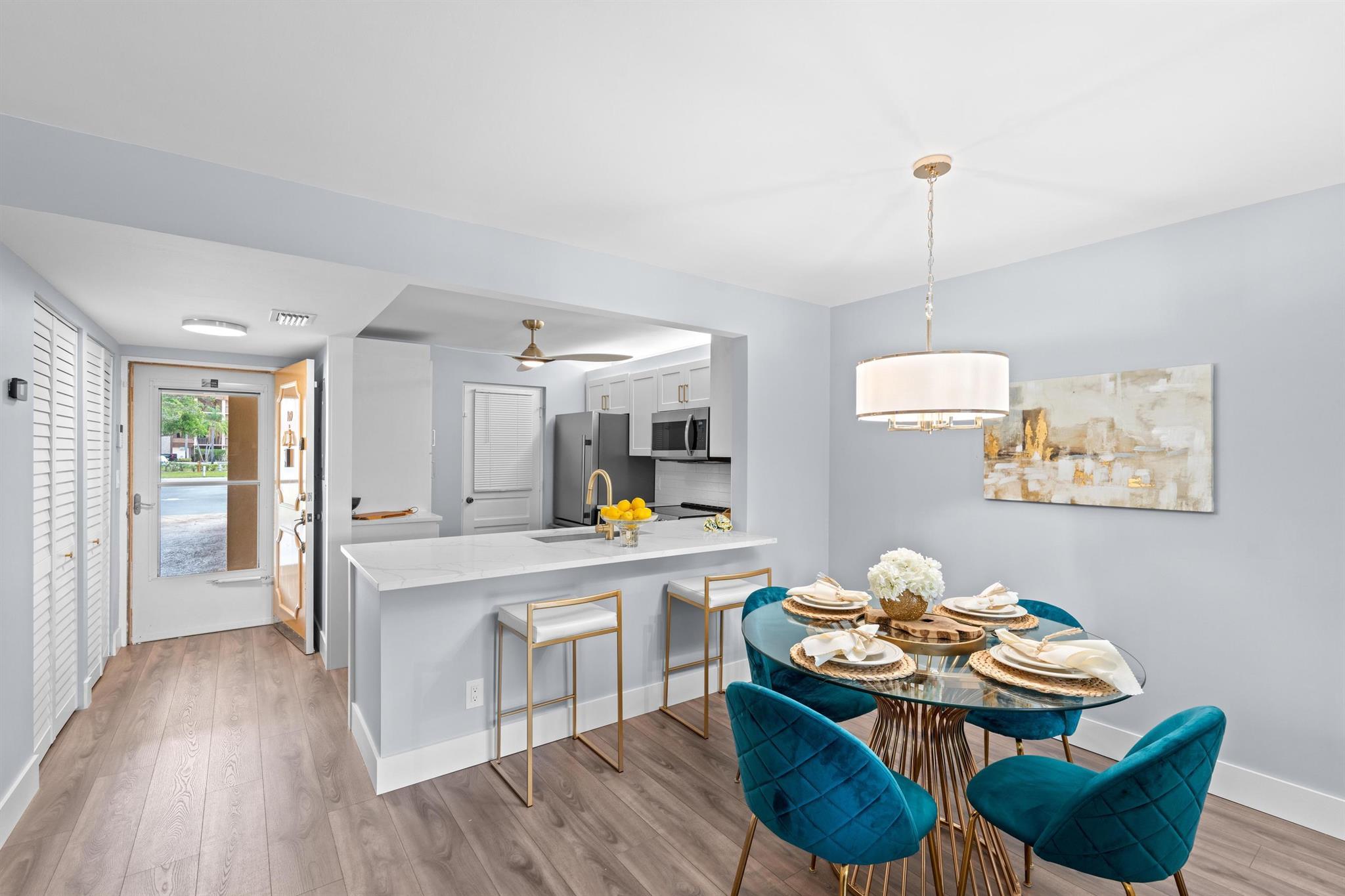 55 PLUS BUILDING. Welcome to your perfect slice of paradise in East Boca! Nestled in the heart of Boca Teeca, this beautifully updated 2-bedroom, 2-bathroom ground-floor condo offers the ideal blend of comfort, convenience, and coastal living.Step inside to discover a spacious and light-filled interior with a modern open floor plan, perfect for entertaining or relaxing. The updated and modern kitchen features sleek white quartz countertops, stainless steel appliances, and ample cabinet space. The primary suite is a peaceful retreat with dual closets, including a large walk-in closet and en-suite bath, while the second bedroom offers flexibility for guests or a home office.Enjoy your morning coffee or evening wine on the private screened-in patio--no stairs or elevators needed.
