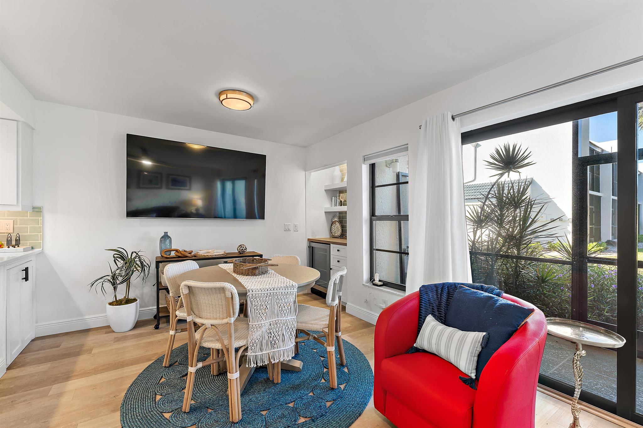 Located in Jupiter Ocean & Racquet Club, this 935 sq ft 1-bedroom, 1.5-bath condo offers an updated and move-in-ready coastal living experience. Recent enhancements include a completely refreshed kitchen featuring refaced cabinetry, quartz countertops, and stainless steel appliances. The open living area includes a new sleeper sofa and an added bar with beverage center, providing flexibility for both daily living and entertaining. The home showcases luxury vinyl flooring throughout, a walk-in shower in the upgraded full bath, refreshed vanities in both bathrooms, and a spacious walk-in closet in the bedroom. Other functional upgrades include impact windows and sliders, a 2021 roof, 2021 AC, and a 2019 water heater. Enjoy your morning coffee on the peaceful, north-facing patio