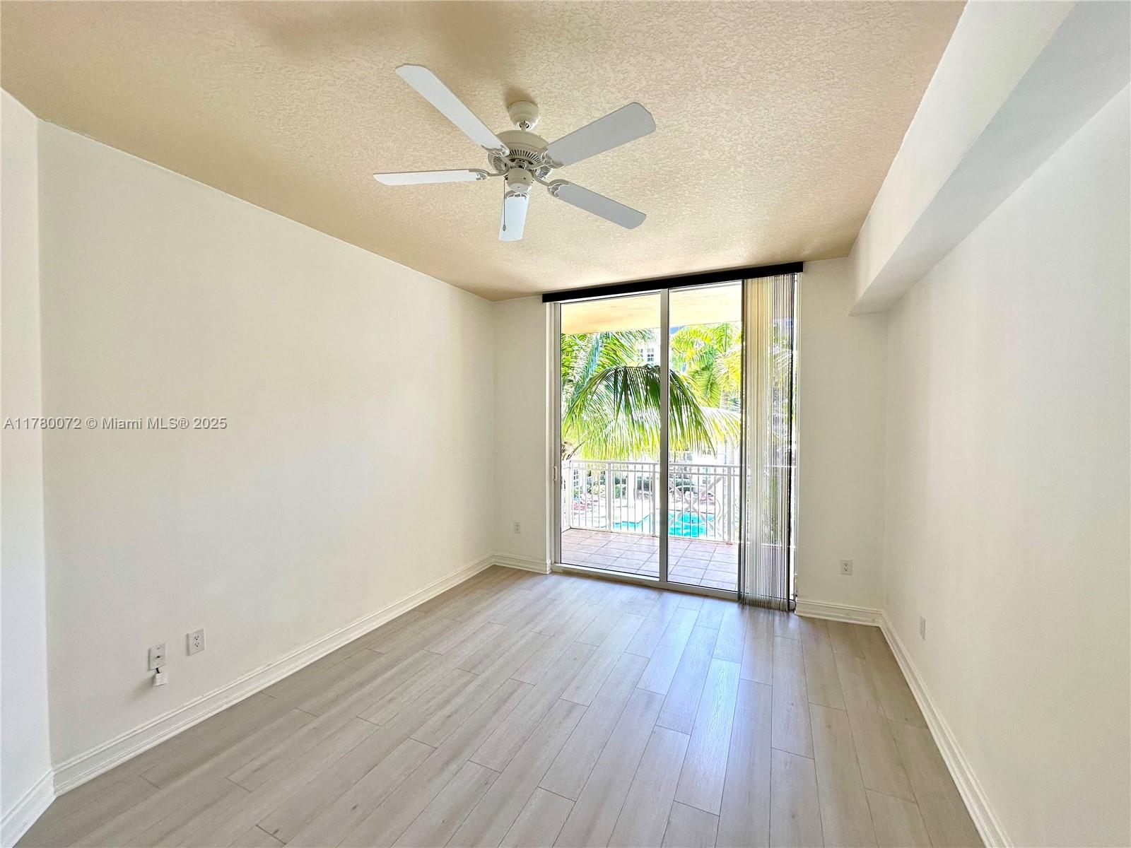 Lovely 1-bedroom 1-bathroom condo in the gated Mediterranean-style Alaqua, Aventura. Enjoy the relaxing views of the pool and the courtyard from your large balcony. The move-in ready unit features volume ceilings, new laminate floors throughout, impact windows and doors, washer/dryer, open kitchen with stainless steel appliances and granite counter tops, spacious bathroom with bathtub and shower. Ok to lease first year, pet friendly, 1 assigned parking. The peaceful and quiet manned-gated community offers great amenities: heated pool, clubroom, gym, business center, and a beautiful boardwalk on a serene waterway. Prime location close to parks, Aventura Mall, Gulfstream Park, great schools, medical centers, restaurants, entertainment, and more.