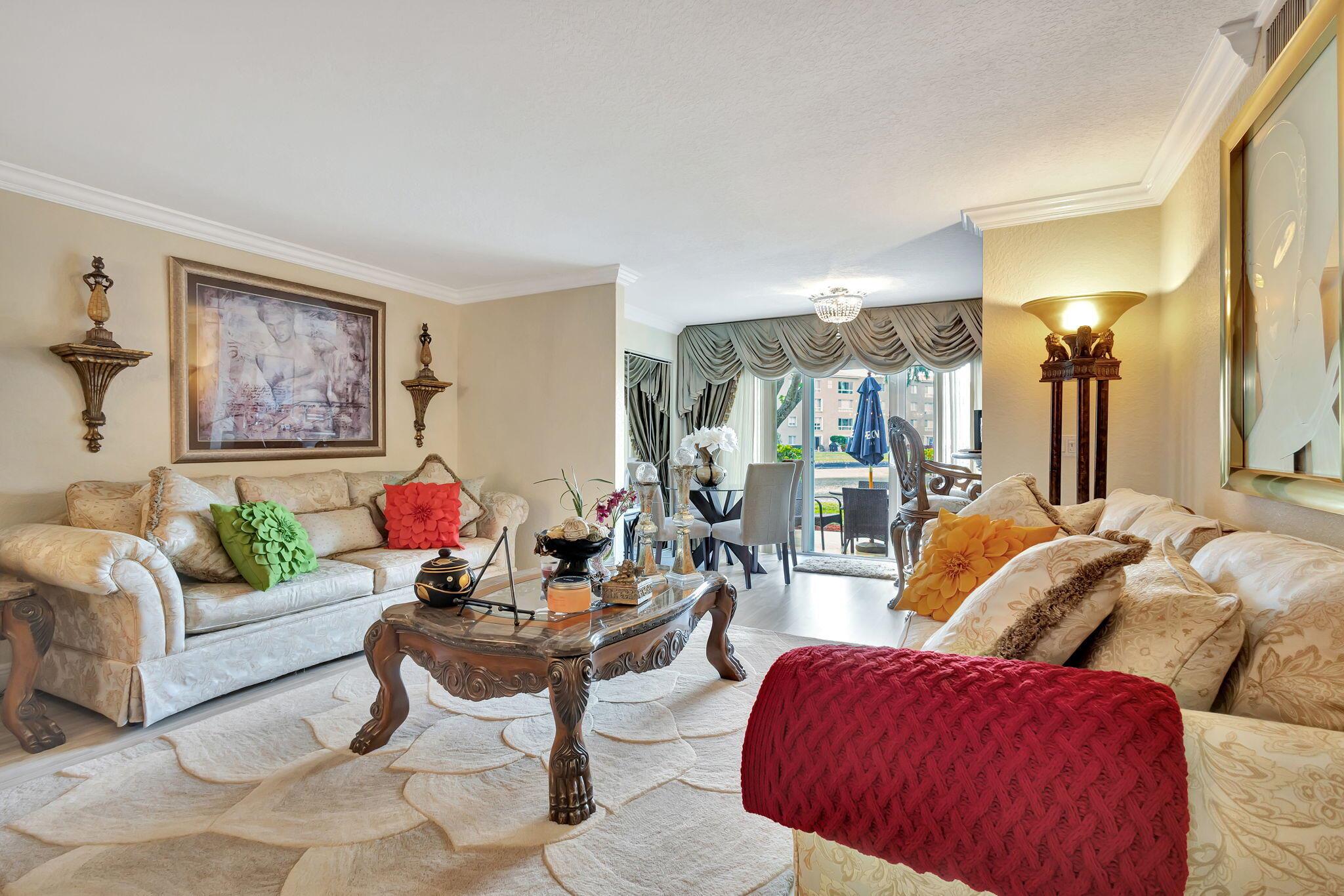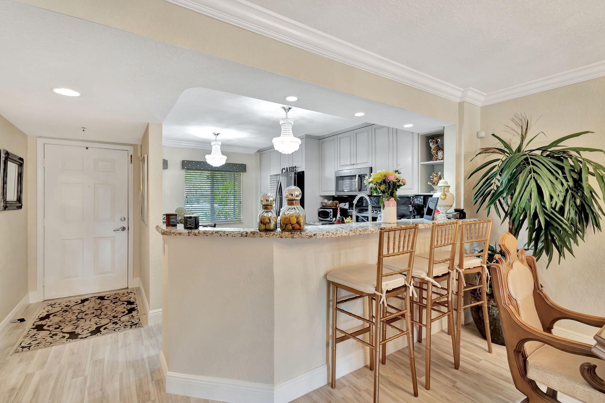 One of the most beautiful first floor condos in the community. It over looks the lake with a patio for barbecueing. It boast of two parking space one of which is covered. Condo has been updated with open living area. Tiled thru out, kitchen counters and backsplash in Corian.California Closets, updated bathrooms, furniture negotiable. Large storage closetClubhouse has indoor/outdoor pool, hardtru tennis courts full sevice cafe. Over 50 clubs to keep you busy.