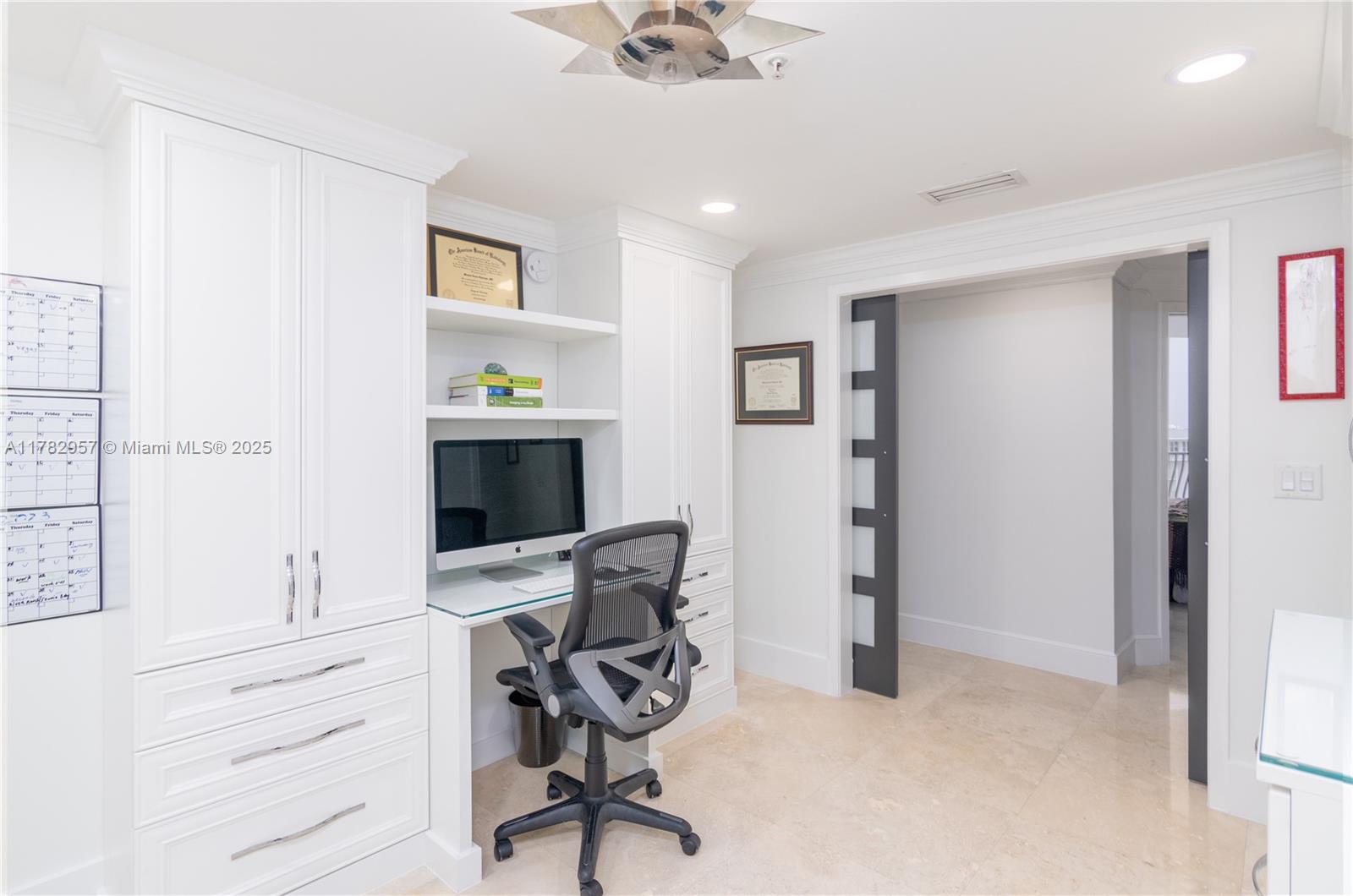 Stunning, One-of-a-Kind Residence Just Steps from the Beach! This fully renovated 2-bedroom + den condo boasts 1,990 sq ft of refined living space and an expansive 1,100 sq ft wraparound balcony with breathtaking ocean and Intracoastal views. The den, currently styled as a chic vanity/office space, adds versatility. Designer touches abound with custom fire glass entry doors, elegant bathroom mirrors, high-end finishes, and bespoke closets and cabinetry throughout. The open-concept kitchen is a chef’s dream, designed with luxury and function in mind. Floor-to-ceiling high-impact windows flood the space with natural light and frame postcard-worthy views. Located just a short stroll from the sand, this is coastal living at its finest