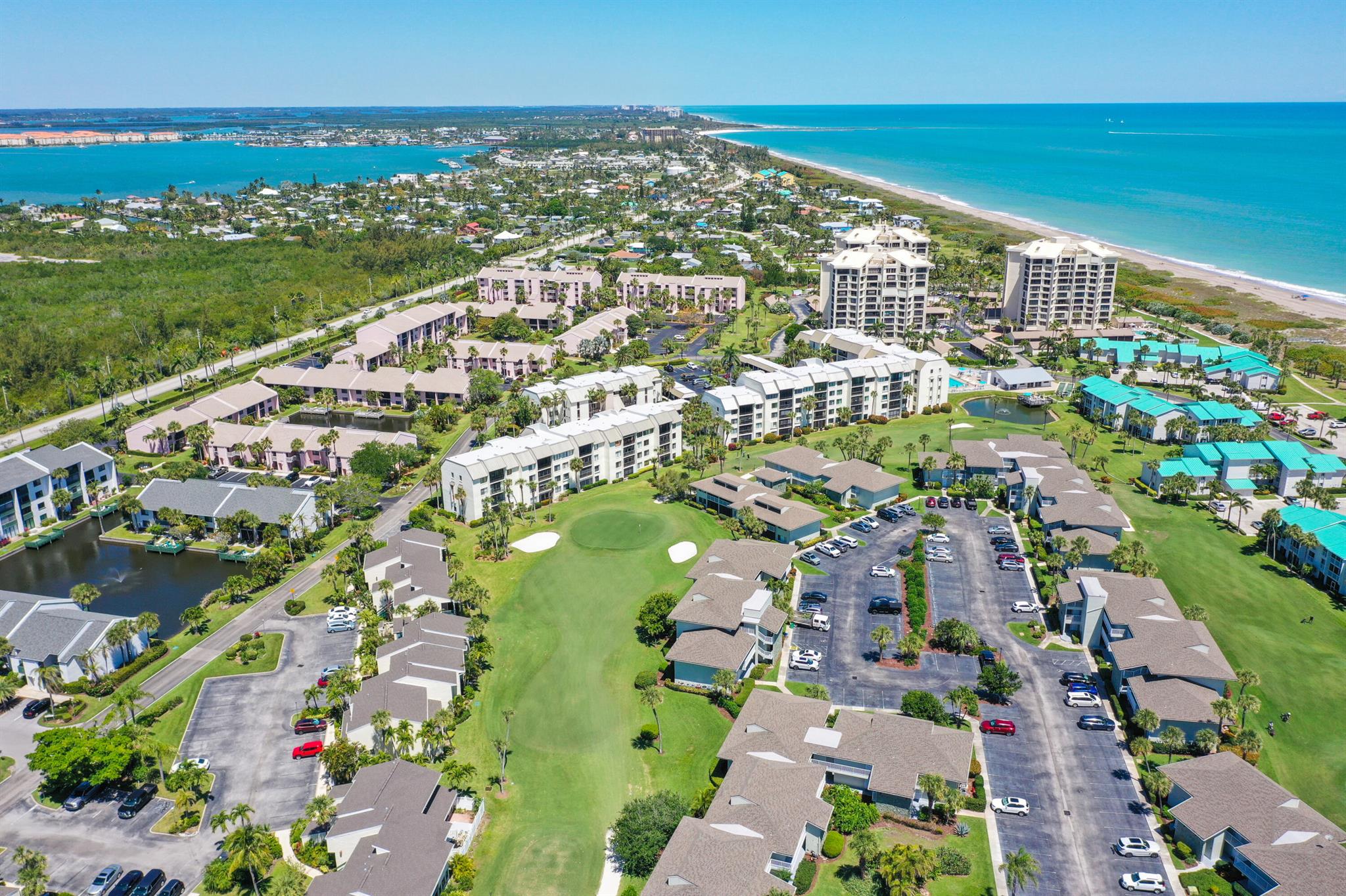 Beautiful furnished 1 bedroom, 1 bath condo has been upgraded to include granite kitchen counter top, new vanity, new bedroom flooring & extra storage. New AC in 2023, new washer dryer 2023, new roll down shades on lanai area. Extended living room with great views of the golf course. Just 7 minutes walk to the ocean!! Enjoy beautiful Ocean Village and the many amenities it has to offer including 3500 feet of private beach, 9-hole 3 par golf course, bocce ball, shuffle board, pickleball, tennis, multiple pools and hot tubs, new fitness center and clubhouse, NEW restaurant and tiki bar, NEW resort style main pool 2025, 24 hour gated community and close proximity to downtown Ft. Pierce and the inlet.