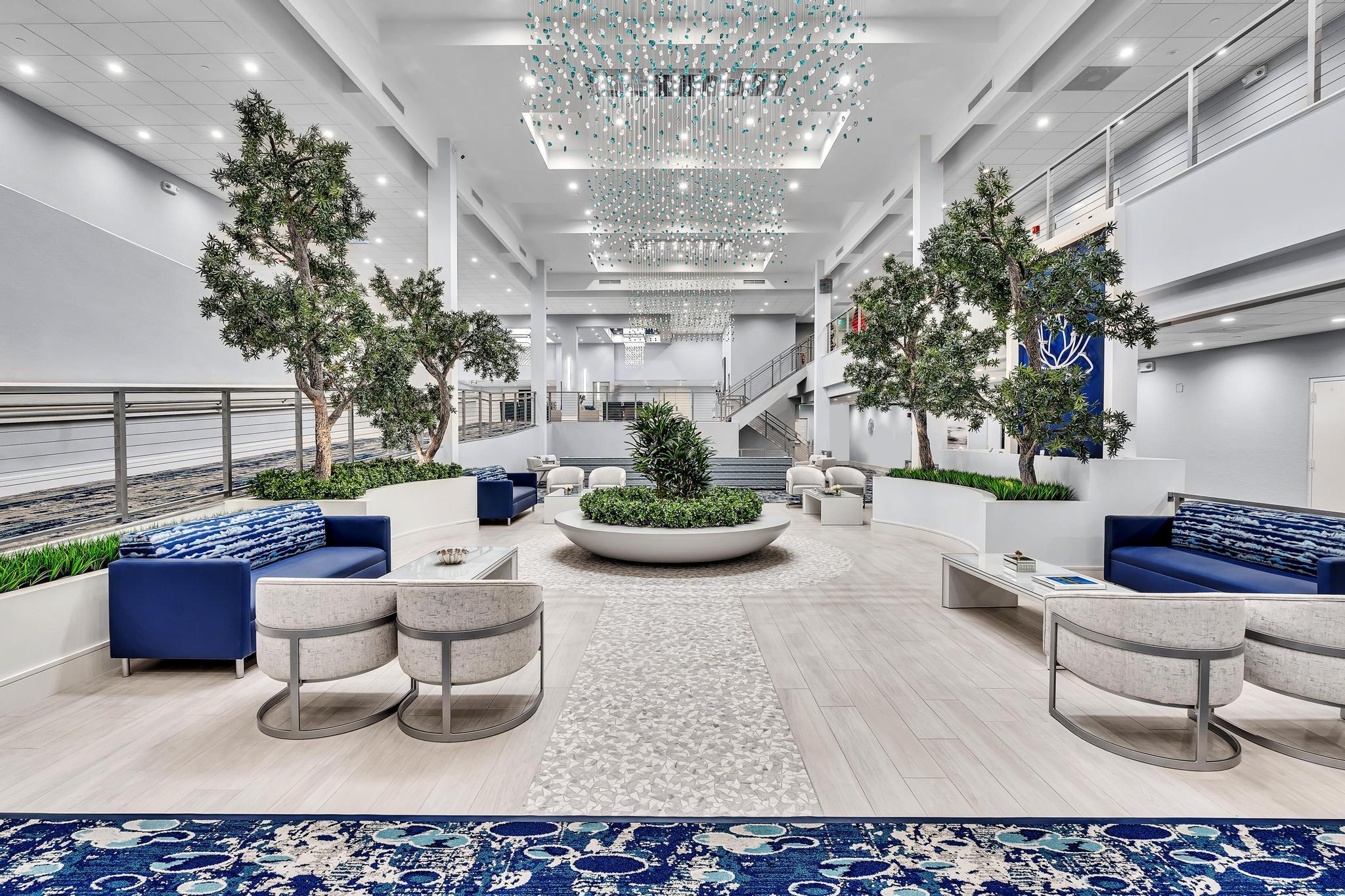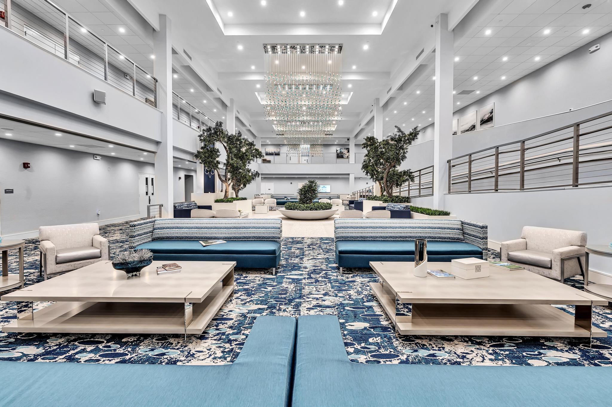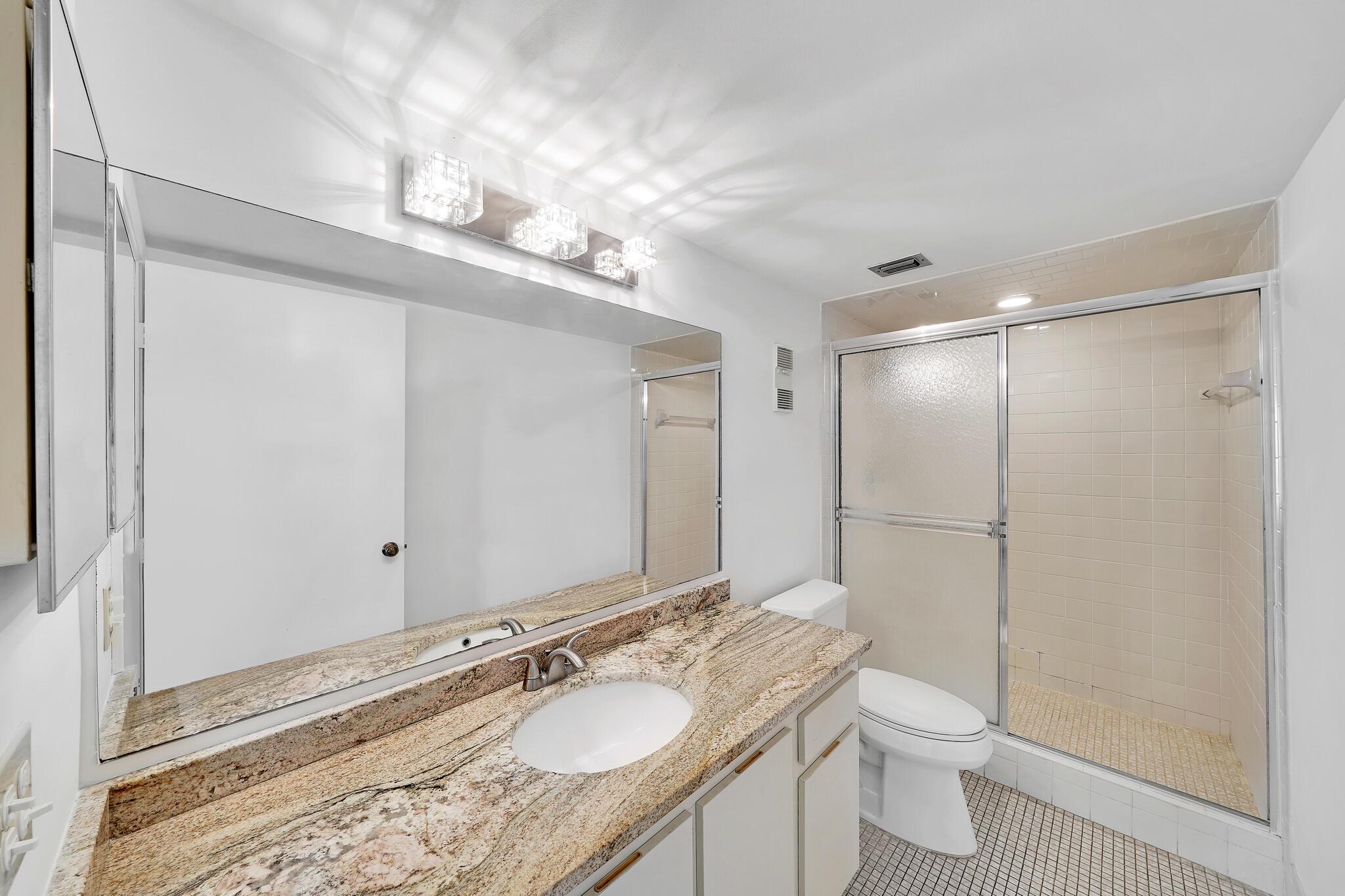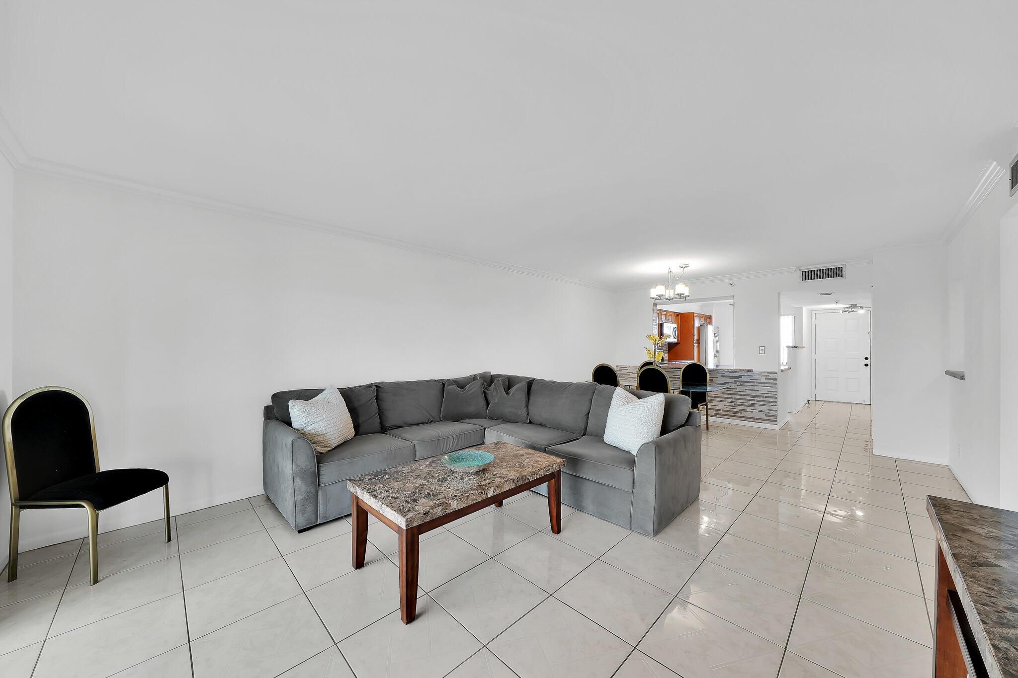 Don't miss this top-floor penthouse (8th floor), updated 2 bed, 2 bath condo in the desirable Huntington Lakes community with stunning water views. This bright, open-layout unit features ceramic tile floors, granite countertops, and a large eat-in kitchen. The spacious primary suite includes two walk-in closets and direct access to a screened, covered balcony shared with the living room. Partially furnished with in-unit laundry, ample storage, and an extra storage unit. The building has two elevators and is steps from the outdoor pool. Enjoy a newly renovated clubhouse with an indoor Olympic-size pool, theater, fitness center, game rooms, tennis, pickleball, and more. Resort-style 55+ living at its best!