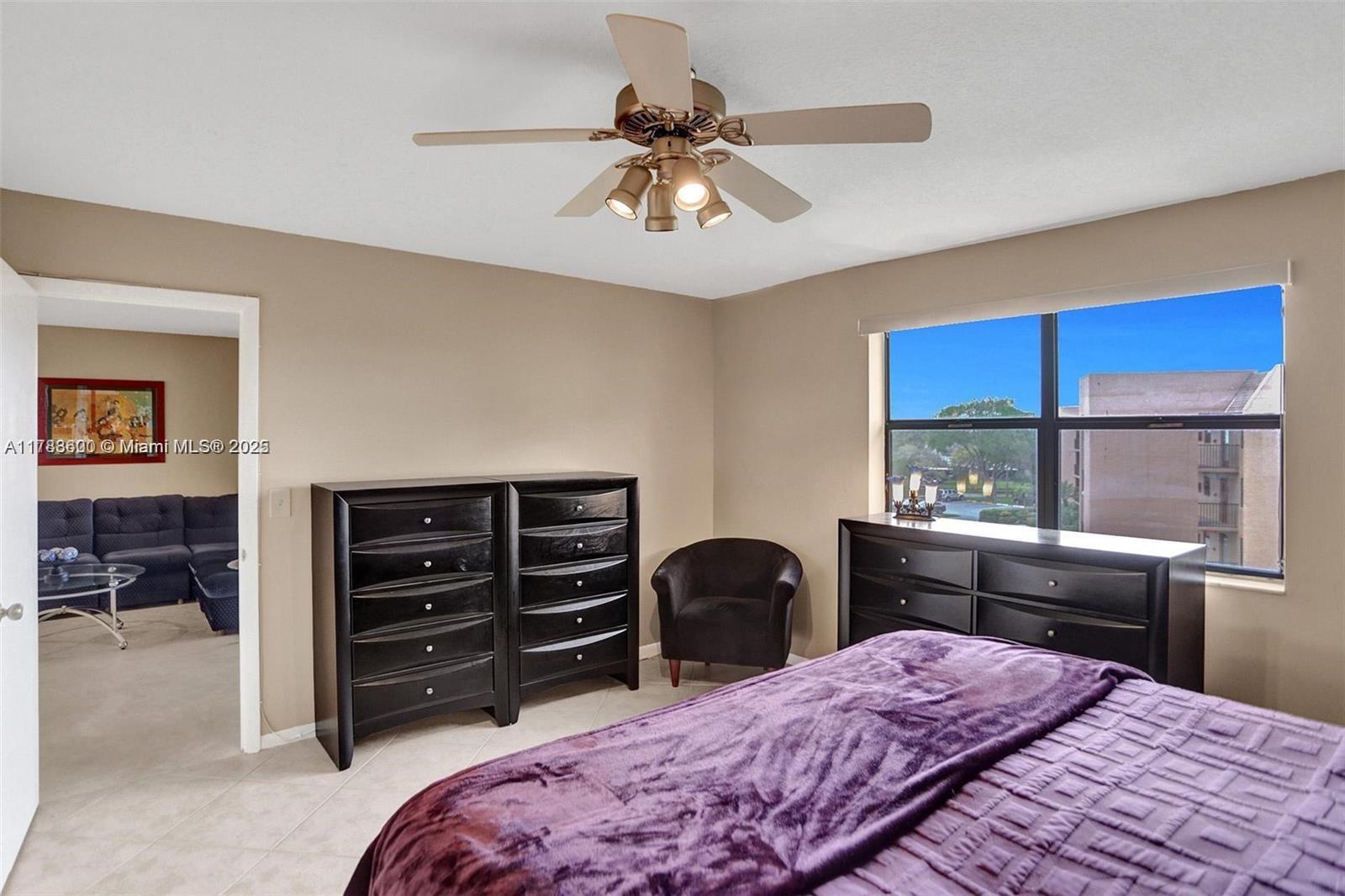 Welcome to this large, golf -lake view, meticulously maintained rarely available top floor corner unit in the desired 55+ community of Sunrise Lakes Phase 4. CASH ONLY. New ELEVATOR & new ROOF, assessments were paid in full. Washer/dryer in the unit! AsPer H0A: Adult community, ages 55+ and 18 older, $37,500 adjusted gross income, 700 Min credit score required. No leasing. This bright & open floor plan with views of the water from your enclosed Florida room. Featuring updated neutral tile through, upgraded Bath Fitter shower , separate vanity area in main bedroom, large walk in closet, large washer dryer, closet doors & built-in shelving, newer refrigerator, newer AC. Clubhouse, pool/spa, tennis, shuffleboard & exercise room. Centrally located near shopping, restaurants & major highways.