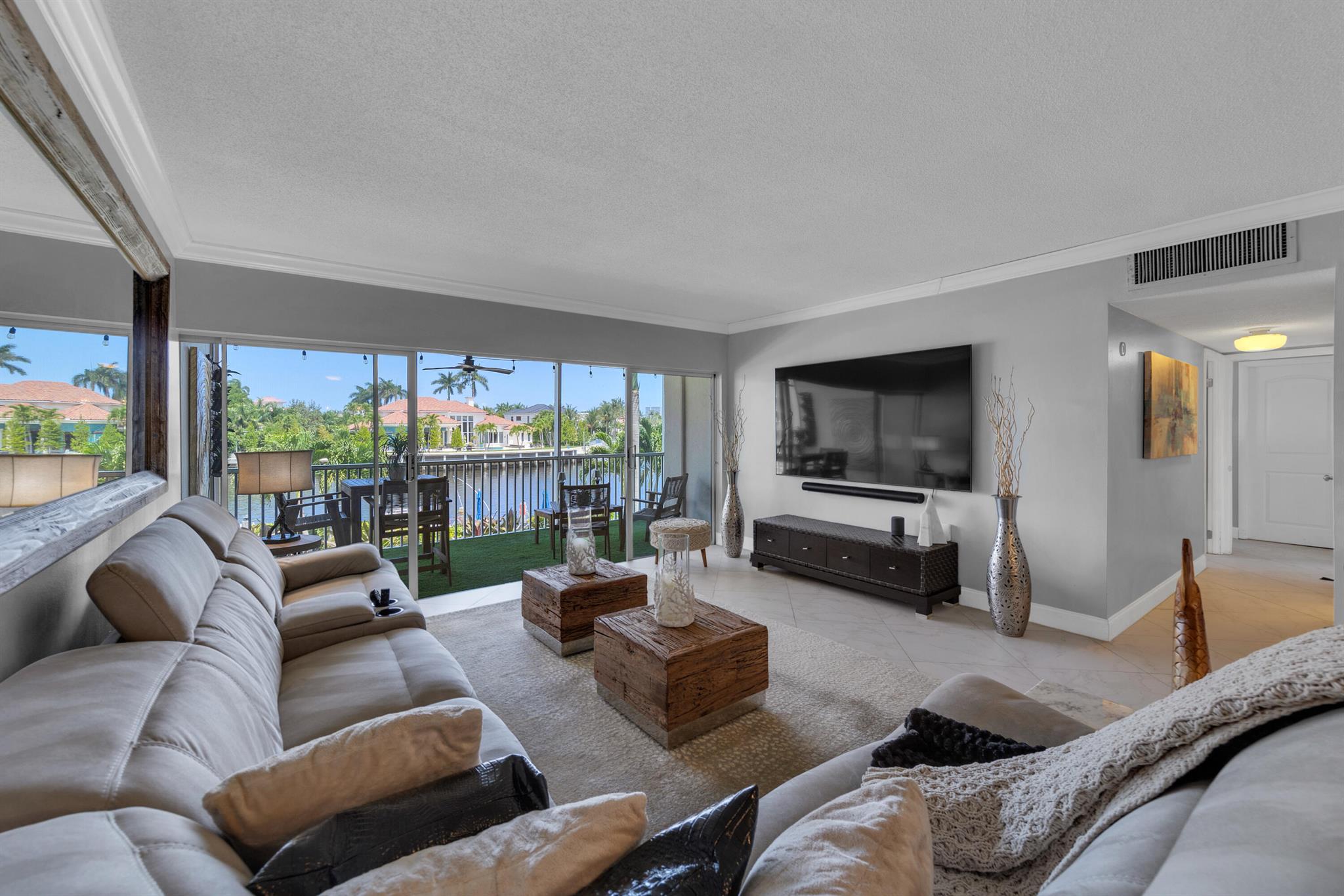 WATERVIEWS GALORE!!! LARGE DELUXE MODEL, 40' BALCONY, WATER VIEWS FROM EVERY ROOM, UPDATED KITCHEN W/ STAINLES APPLIANCES, UPDATED BATHROOMS, COVERED PARKING, WATCH THE BOATS GO BY FROM THE MARINA OVERLOOKING MILLION DOLLAR HOMES IN ROYAL PALM YACHT CLUB BEAUTIFUL POOL W/ GRILLS ON THE WATER, NO AGE RESTRICTIONS, BUILDING HAS PASSED IT'S 40 YR CERTIFICATION. BOAT DOCKAGE WHEN AVAILABLE, BASIC CABLE AND INTERNET INCLUDED IN MAINTENANCE FEE