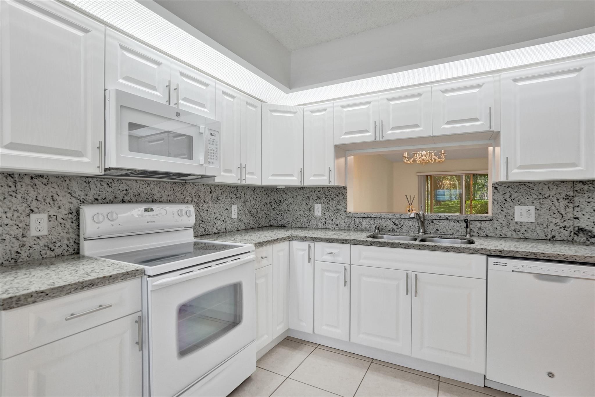 This isn't just a condo, it's a lifestyle upgrade without the large price tag. A ground-floor 2-bed 2-bath unit with a large kitchen with granite countertops, added breakfast counter sitting, new zebra shades (in bedrooms as well) and plenty of cabinet space. Washer and dryer? Yep & they are new, inside the unit. The fully enclosed patio gives you peaceful garden views and shade from the Florida sun—ideal for your morning coffee or evening unwind. Internet, cable, and water are included, plus there’s hurricane protection and parking just steps from your door. This 55+ community offers everything from pools and tennis to Broadway-style shows and a 600-seat theater—because retirement (or semi-retirement) doesn’t mean slowing down. There’s even a community bus if you want to ditch the car.