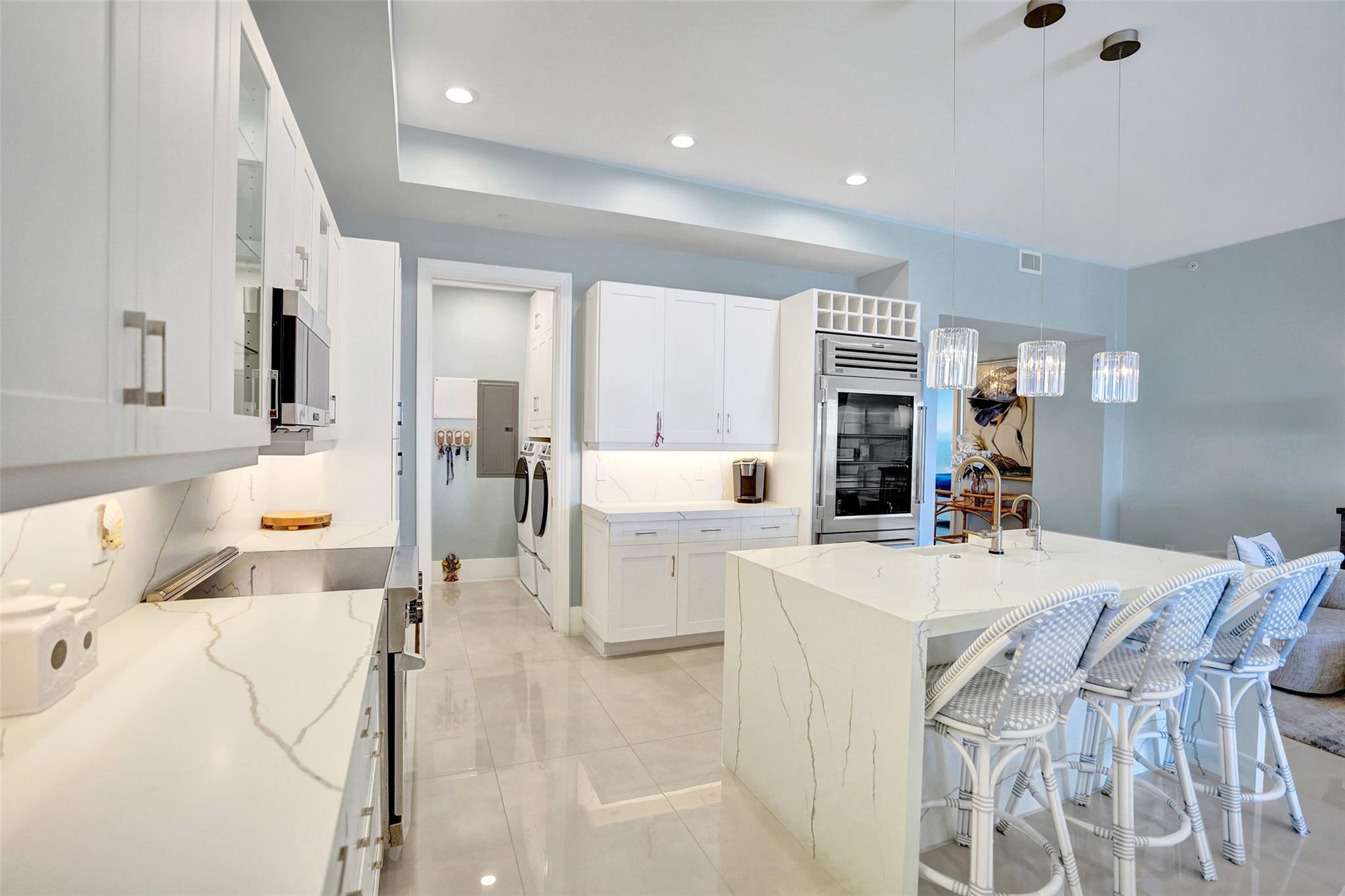 Breathtaking ocean views steal the show in this fully renovated 3 bedroom, 3 bathroom penthouse in the heart of Lauderdale-by-the-Sea! Wake up to endless blue skies and shimmering water from your balcony with floor-to-ceiling impact windows and doors. This light-filled, coastal-modern home features soaring ceilings, a sleek wet bar, and stylish finishes. Extremely pet-friendly—bring up to 2 large pets! Includes 2 garage parking spaces. Enjoy resort-style amenities including an oceanfront pool, hot tub, and gym. Just steps to dining, shopping, and live music at The Square. Whether you're seeking a full-time residence or a luxurious coastal getaway, this beachfront home offers the perfect blend of elegance, comfort, and unbeatable beachfront lifestyle.