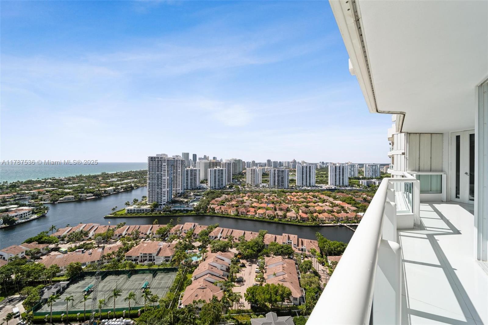 Amazing ocean and intracoastal views!! Elegantly furnished AS IS! Bright unit; all bedrooms, living and kitchen access the balcony. Updated unit with ceramic floor, recess lighting, shades and blackouts. Master suite, 2nd full bathroom, laundry room. Resort style community with 3 pools, tennis courts, BBQ areas, full service Spa, hair and nail salon, gym, fitness classes, on site café, Waterways marina across the street, and so much more. Minutes away from Aventura Mall, Gulfstream Park, Park Square Aventura, variety of dining and shopping nearby, close to beaches, house of worship nearby, Don Suffer Aventura High School on same street. Available now.