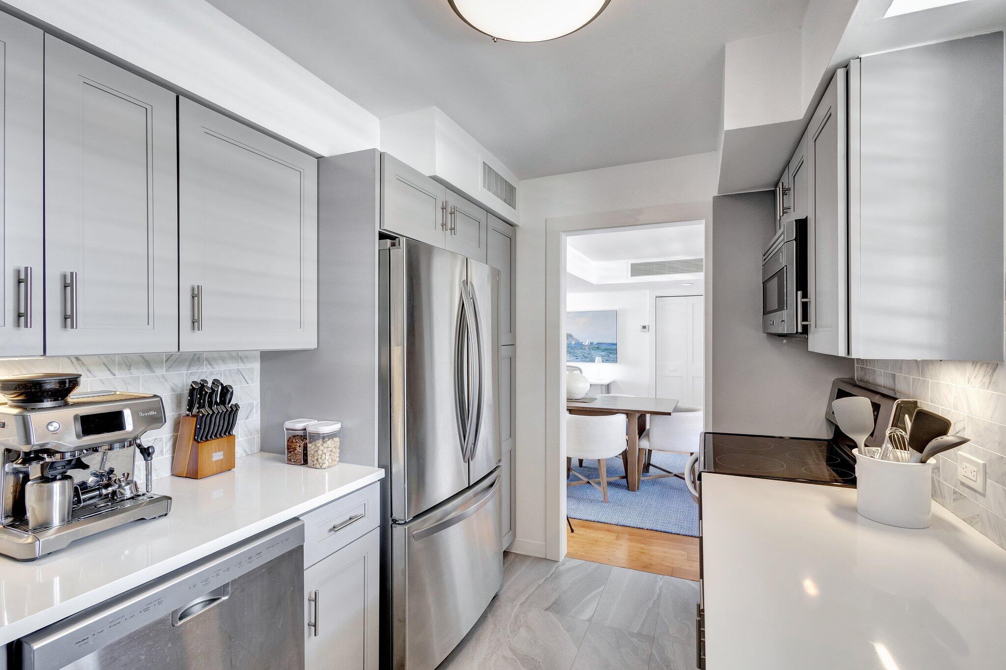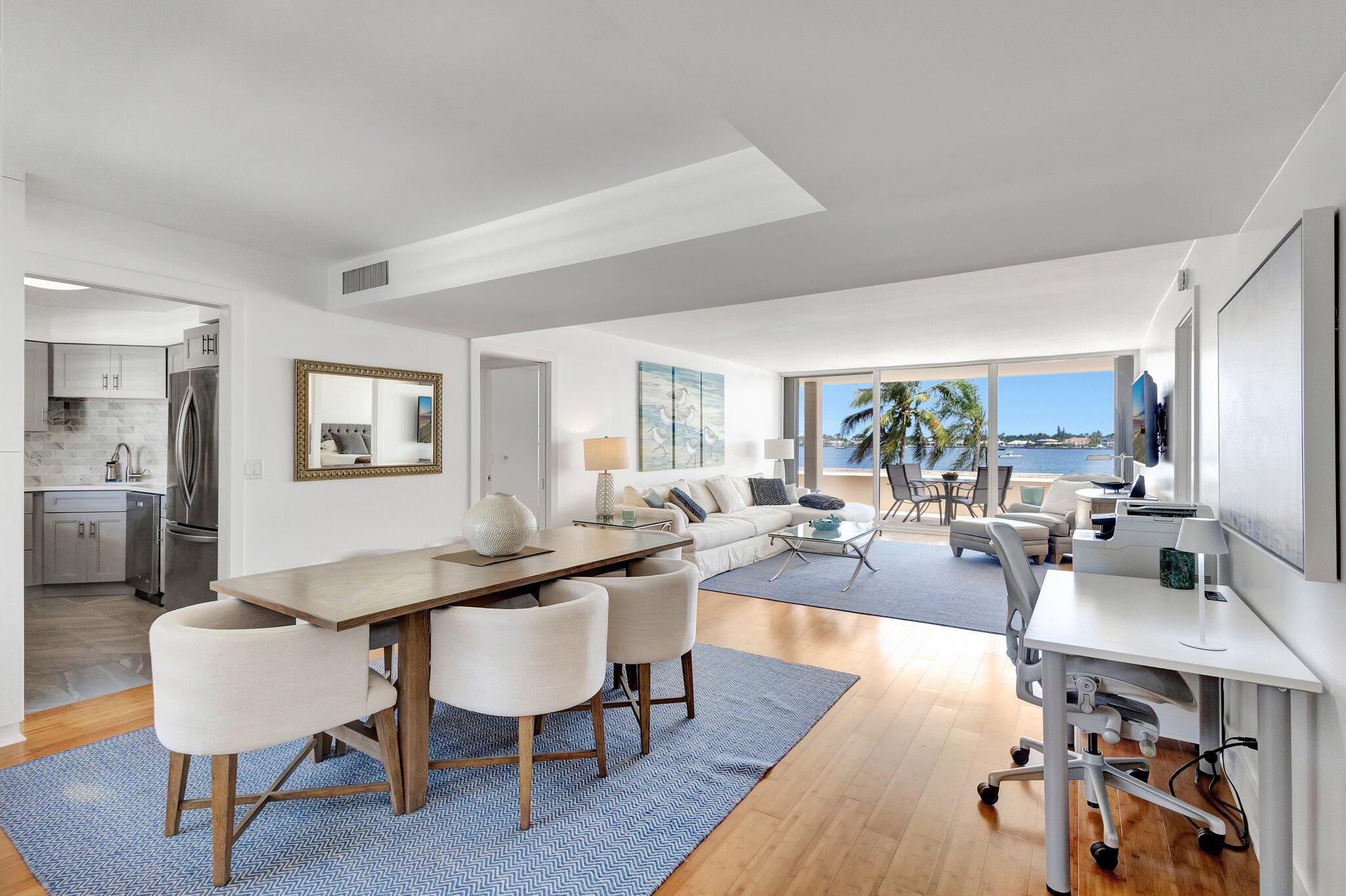 Welcome to luxury living at its finest in the highly sought-after Quay North building. This beautifully renovated 2-bedroom, 2-bathroom unit offers spectacular views of the serene lake/intracoastal, creating a peaceful retreat you'll never want to leave.Every inch of this home has been thoughtfully updated with meticulous attention to detail. Enjoy the elegance of bamboo wood flooring, complemented by stylish ceramic tile and classic plantation shutters that add both charm and privacy. The open, airy layout is perfect for entertaining or relaxing while soaking in the views. From the moment you step inside, you'll feel the quality and care that has gone into this complete renovation. This unit is truly move-in ready--just bring your suitcase.