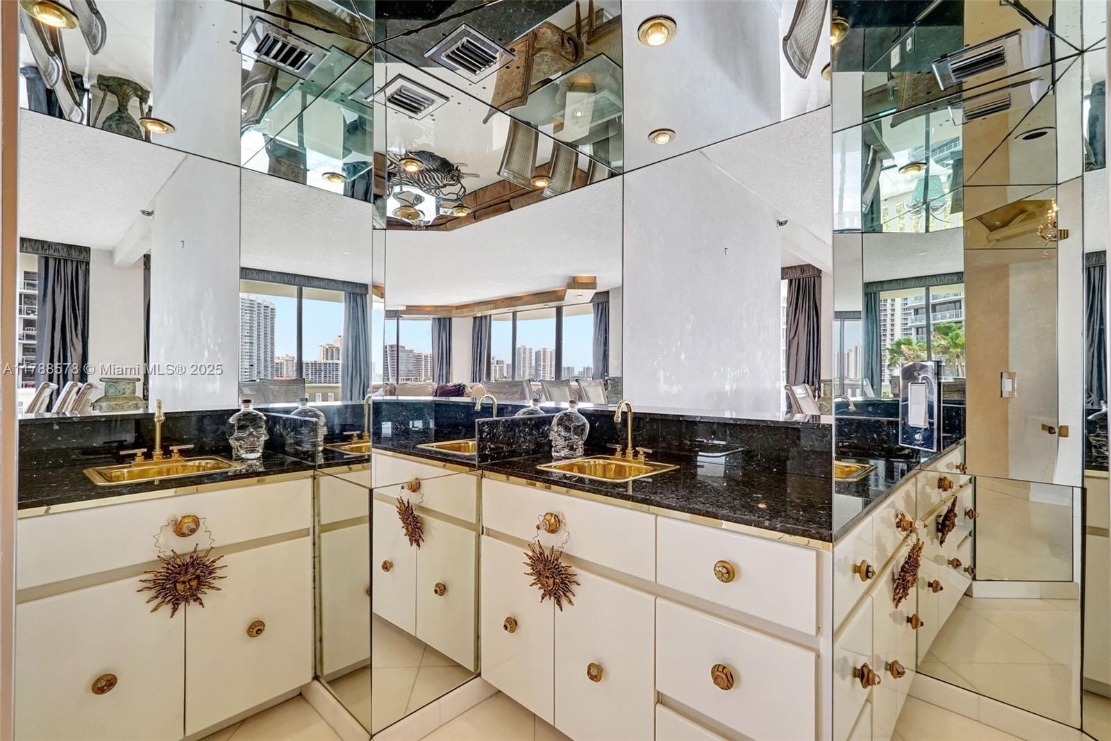 This highly desirable 2,154SF spacious 2 bed/2.5 BA. Coveted split bedroom plan has 2 primary ensuites with large closets. This condo boasts a huge wraparound balcony spanning the whole residence. Priced to sell and motivated seller. Amenities include 24-hour concierge security, valet service, reserved covered parking, and additional separate storage. Williams Island is an 84 Acre Island Paradise! 5 Star Country Club Amenities Feature A 27,000 SF Clubhouse, Gym, Full-Service Spa, Massages, Workout Classes, Indoor Pool, Sauna, Steam Rooms, Outdoor Pools w/Food & Drink Service, 15 Court Tennis & Pickle Ball Club, 2 Restaurants, Deli, Kid's Playground, Marina, Dog park, & More!