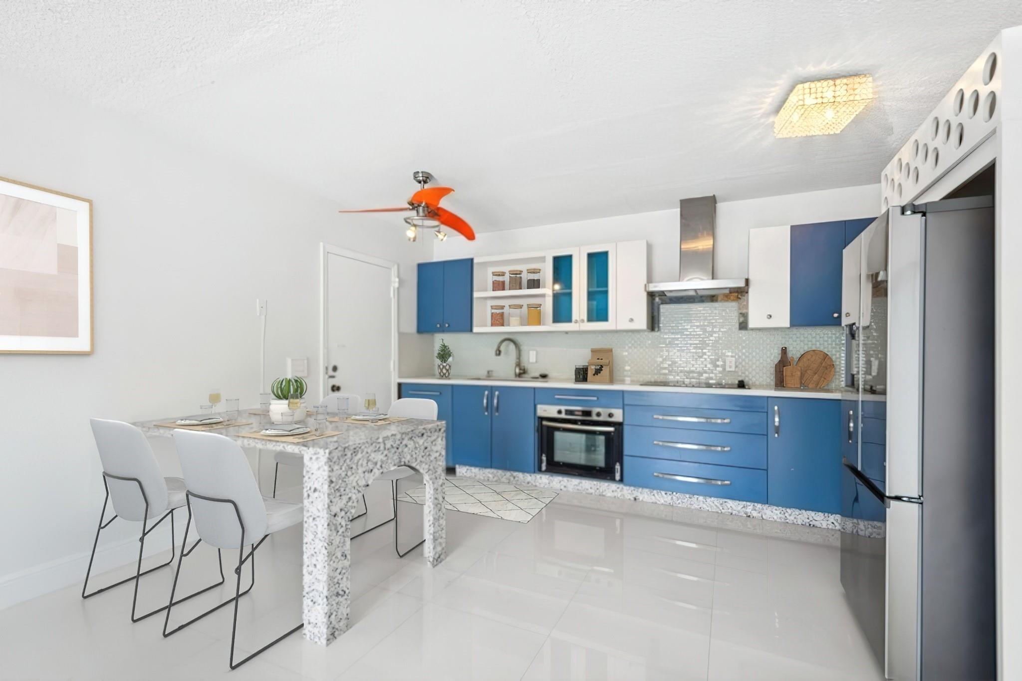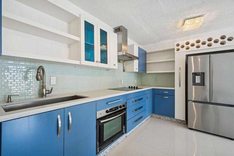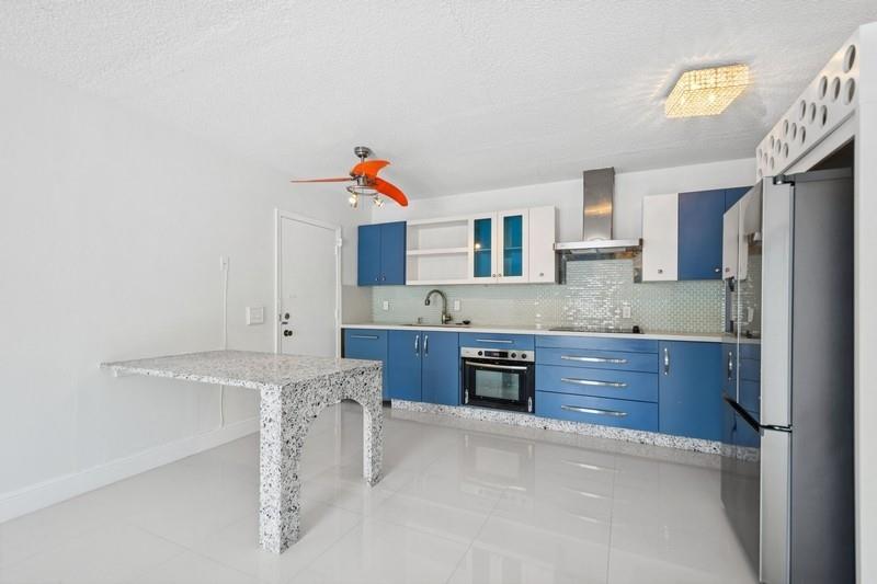 Open modern floorplan with large off white marble tile flooring in main living area with built in table and full wall of counter/cabinets with stainless steel appliances. Wood laminate flooring in the bedrooms. Custom tiled bathrooms. Building is closest to oversized pristine heated swimming pool and gym. 1 parking space, no pets, no renting for first 2 years. Minimum 700 credit score is mandatory for all adult residents. Currently in final stage of 50 year inspection concrete renovation project. Cash buyer. 10 Minutes to Beaches and highway, 5 Minutes to groceries, hospitals, restaurants, retail, all services and more. 45 Minutes to Palm Beach or Miami. Imperial Point Colonnades is a lovely nicely landscaped community near all. Several photos are staged