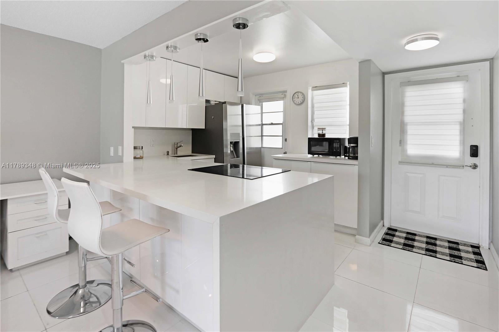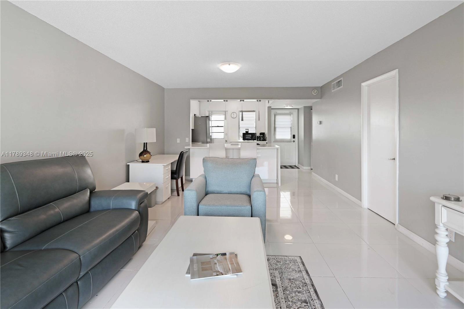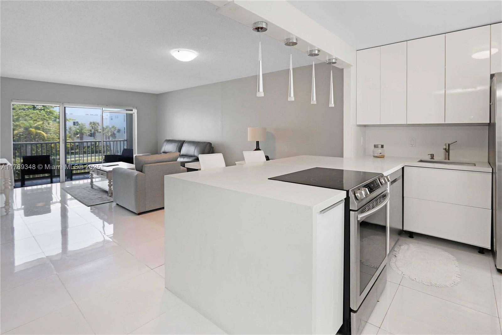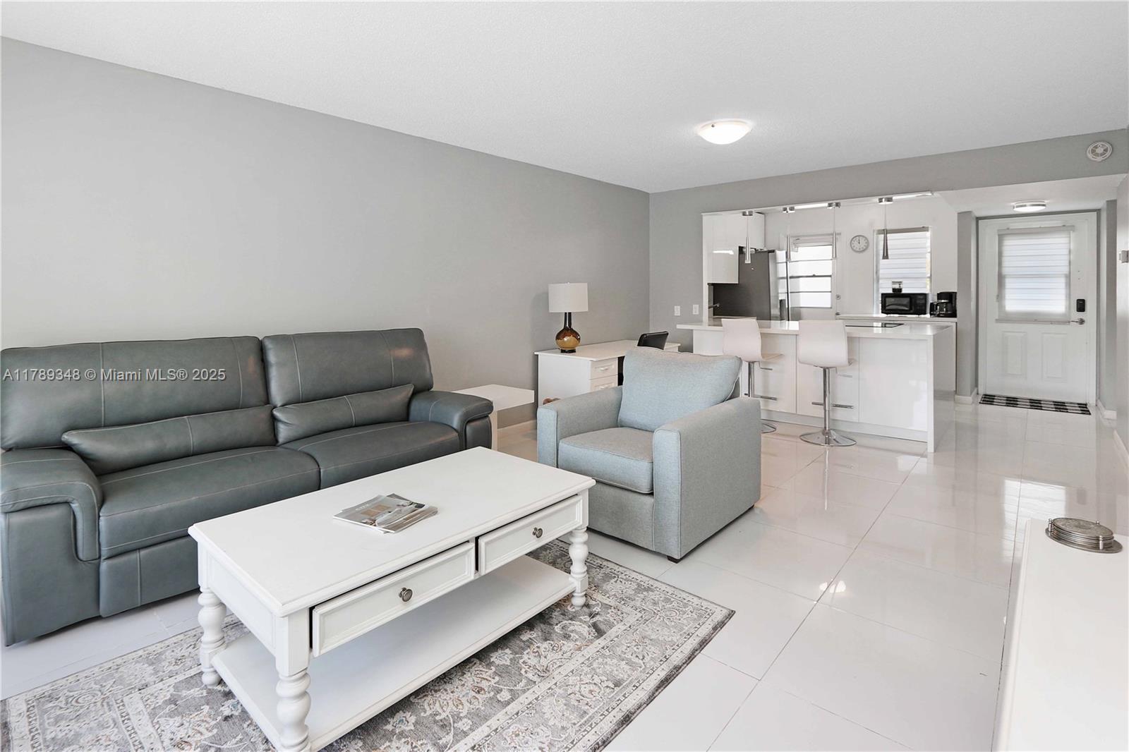 Beautifully remodeled condo, nestled in a 55+ community. Lightly lived in and gently used, this home comes fully furnished, ready for you to move right in. Gleaming porcelain floors and the open-concept layout that seamlessly connects the kitchen to the living room, creating a bright and airy space. The kitchen features modern white glossy cabinets and top-of-the-line appliances—perfect for cooking or entertaining. The spacious bedroom features two generous walk-in closets. Enjoy peaceful mornings with coffee on your east-facing balcony, taking in tranquil views of the lake. Wonderful amenities including a heated pool, clubhouse, and a well-equipped gym. Plus, you’re just minutes from the beach, Fort Lauderdale airport, and plenty of shopping and dining options.