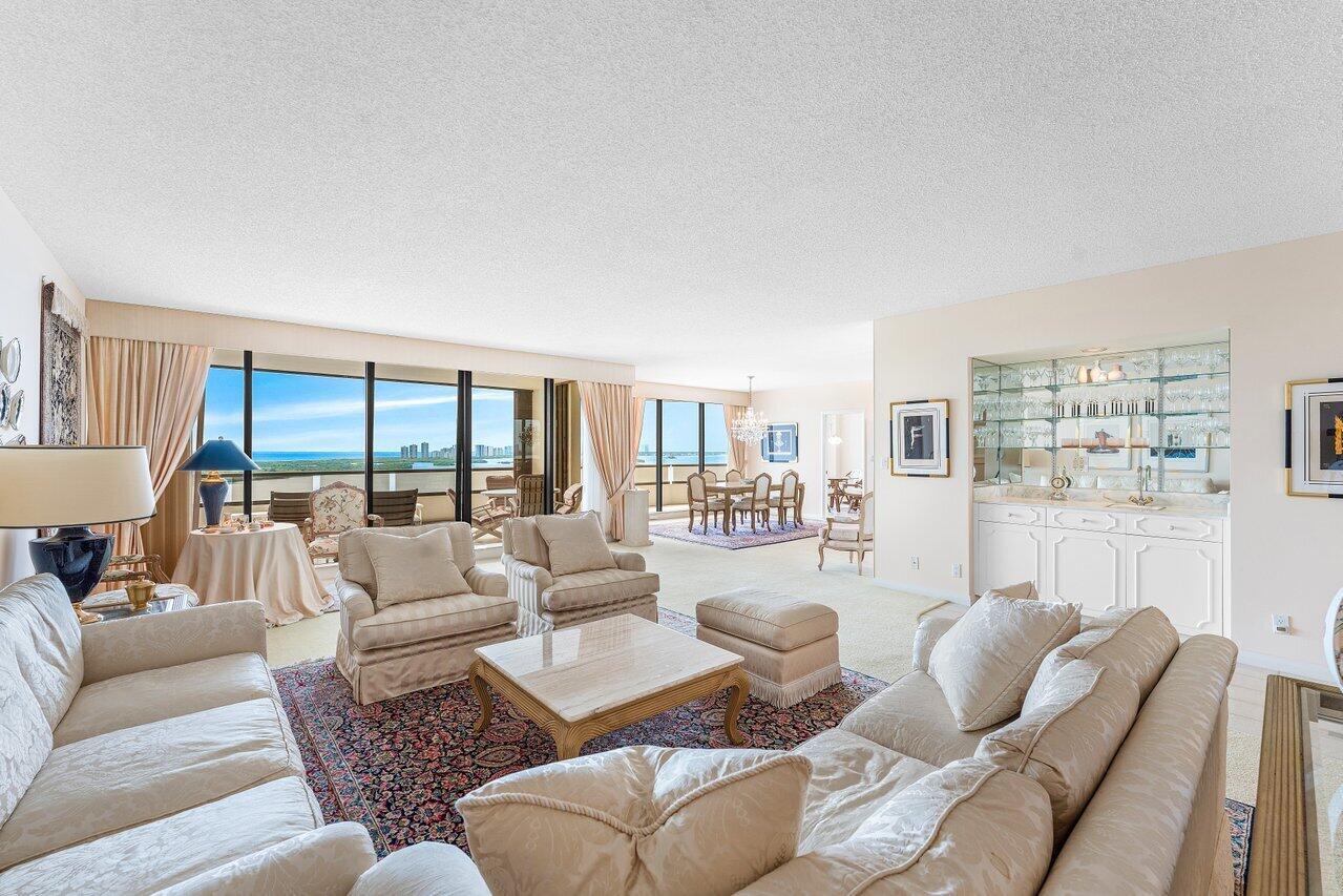 This rarely available 15th-floor residence at Lake Point Tower is located in one of Palm Beach County's most prestigious addresses. Enjoy stunning, panoramic views of the Atlantic Ocean, Intracoastal Waterway, and Singer Island from every room, with floor-to-ceiling windows bathing the space in natural light. This spacious condo features two generously sized bedrooms, each with luxurious en-suite bathrooms, and offers the flexibility to add a den for extra versatility.Step onto your expansive wraparound balcony--perfect for watching incredible sunrises over John D. MacArthur Park or tranquil sunsets with boats gliding across the sparkling waters. This oversized outdoor retreat provides ample room for patio furniture, making it ideal for entertaining or relaxing while watching