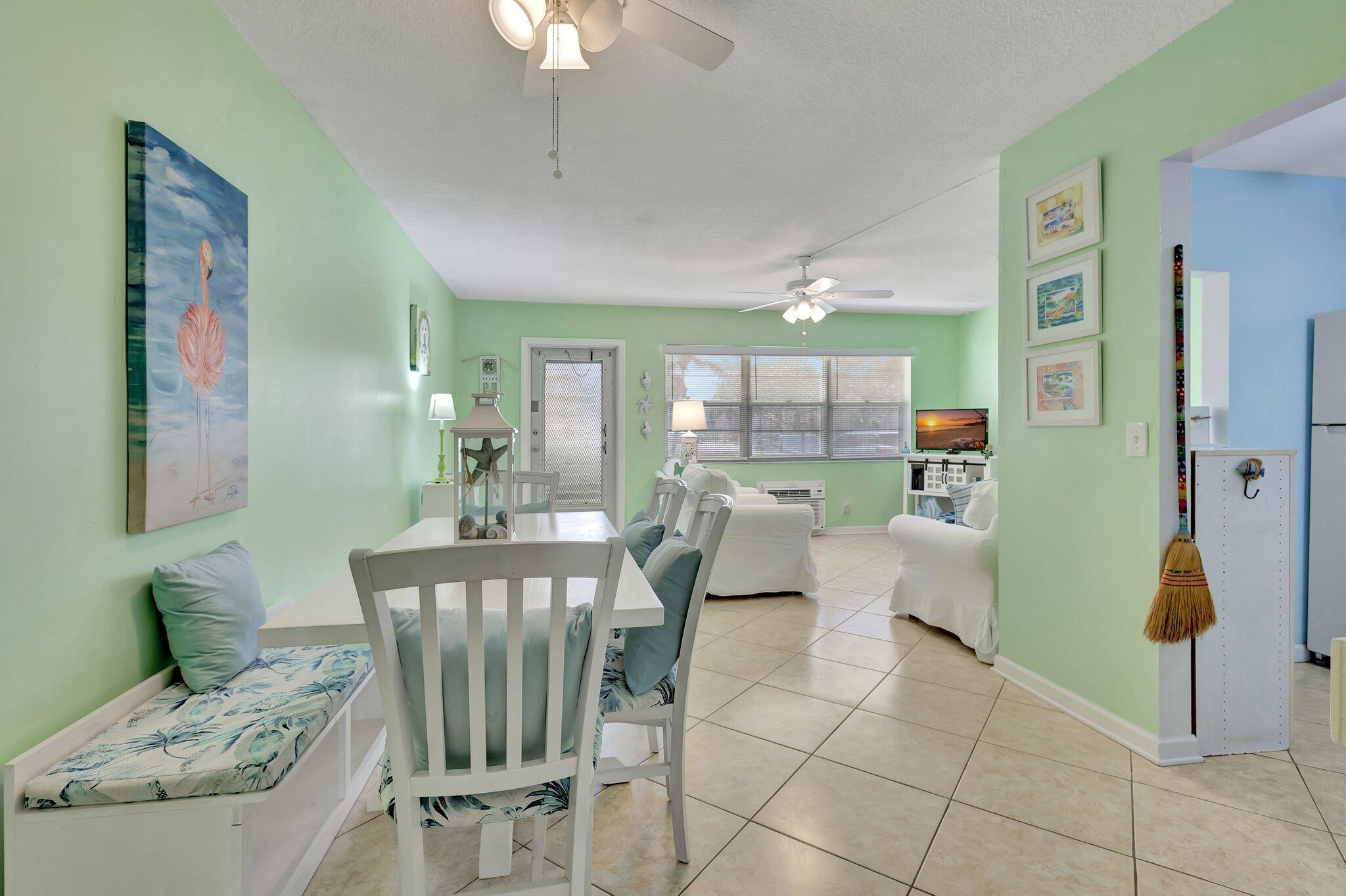 This bright & charming renovated coastal styled 1 bedroom 1 1/2 bath ground floor condo is ready for a new owner to make it their new home. Sheffield E is a well maintained building that has a lovely patio for the residents to enjoy. The Kitchen has been updated with white cabinets & appliances. Both bathrooms have been renovated. The full bath is also located in the Master bedroom & the half bath is located in the hall across from the pantry/linen closet. The Florida room is located off of the Master bedroom and has a additional storage area, door that leads to a back paver patio to relax & enjoy. Century Village West Palm Beach is an active 55+ Gated Community which is located close to Shopping, Restaurants, Airport, Golf, Boating, Tennis, Turnpike Hwy, Beaches, Fishing & so much more