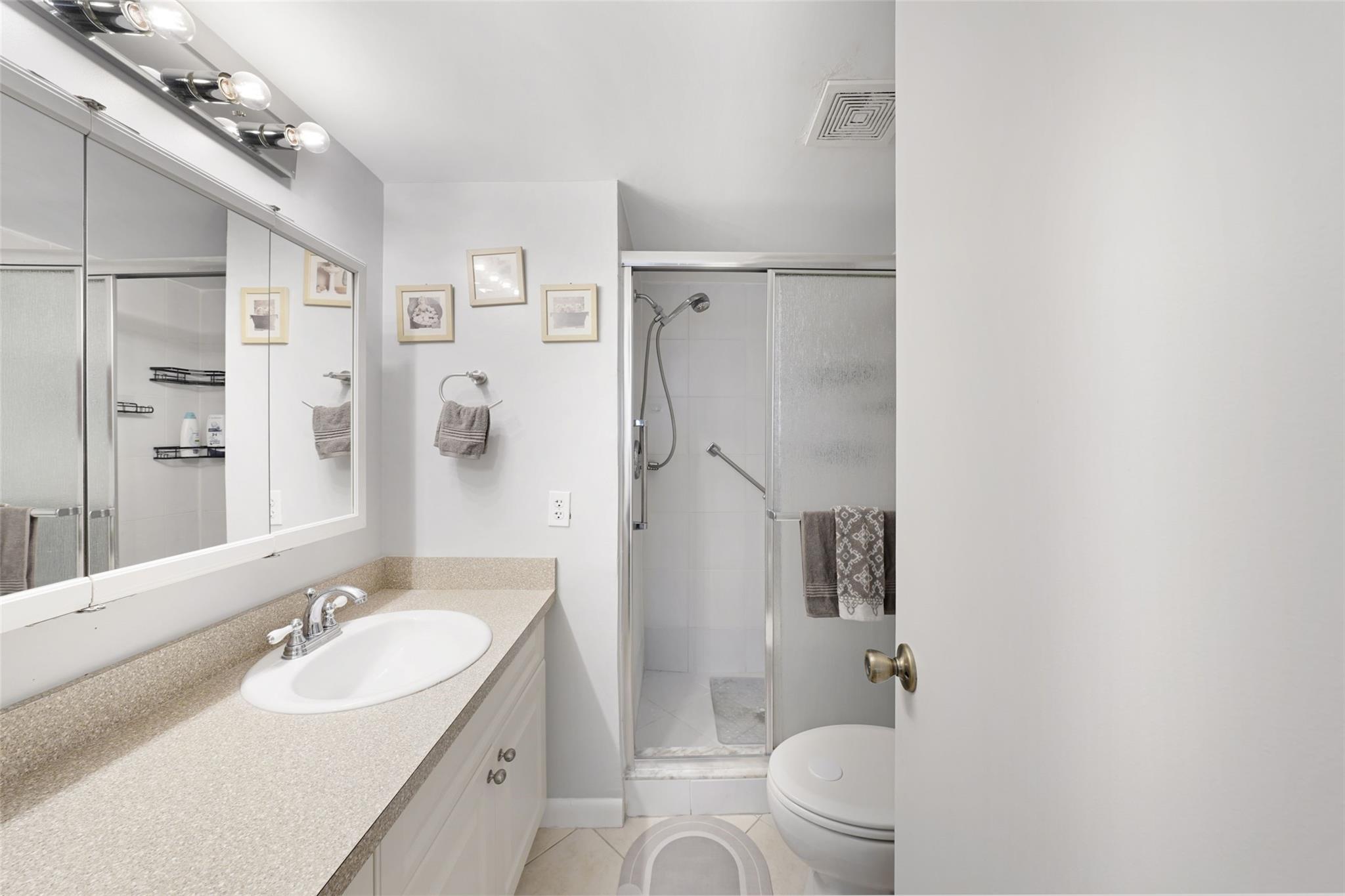 Beautifully remodeled 2-bedroom, 2-bath unit on the 1st floor. The extended living area and Florida room feature hurricane impact windows and doors, including a back door that serves as an emergency exit and opens to a serene lake view. The spacious master bedroom includes a walk-in closet, with laminate flooring throughout the unit. The renovated kitchen features recessed lighting and stainless steel GE appliances (range, microwave, dishwasher from 2012), complemented by a new Whirlpool refrigerator (2024). A/C and W/H are Rheem models from 2016. This is an active 55+ community, the complex boasts its own golf course with free access for residents. The clubhouse offers a wide range of amenities including tennis courts, indoor and outdoor heated pools, sauna, and gym.