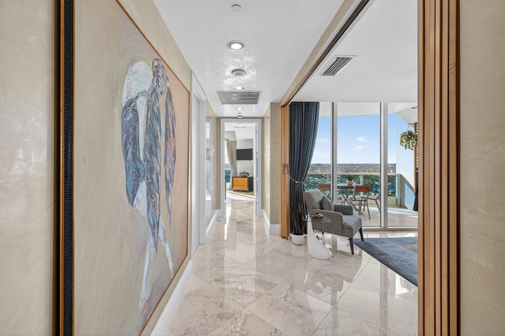 Oceanfront Penthouse! Sophisticated coastal living in this 3-bed, 4.5-bath custom designed condo at Aquazul, Lauderdale-by-the-Sea. Spanning 2,572 SF; Private Elevator entry, floor-to-ceiling windows, panoramic ocean views & three balconies boast sunrise & sunset vistas. High-end finishes include Italian cabinetry, marble floors, Venetian plaster and a custom wet bar w/wine fridge, ice maker(Penthouse units enjoy higher ceilings than non-Ph units). Primary suite offers an oversized walk-in closet and spa-inspired bath with Jacuzzi tub and shower. Resort-style amenities include beach service, oceanfront pool, gym, saunas, tennis/pickleball court, dog park, BBQ area and a private, extra-large, climatized storage unit and 4 deeded parking spots, EV access. Pet-friendly.Step Into Luxury today!