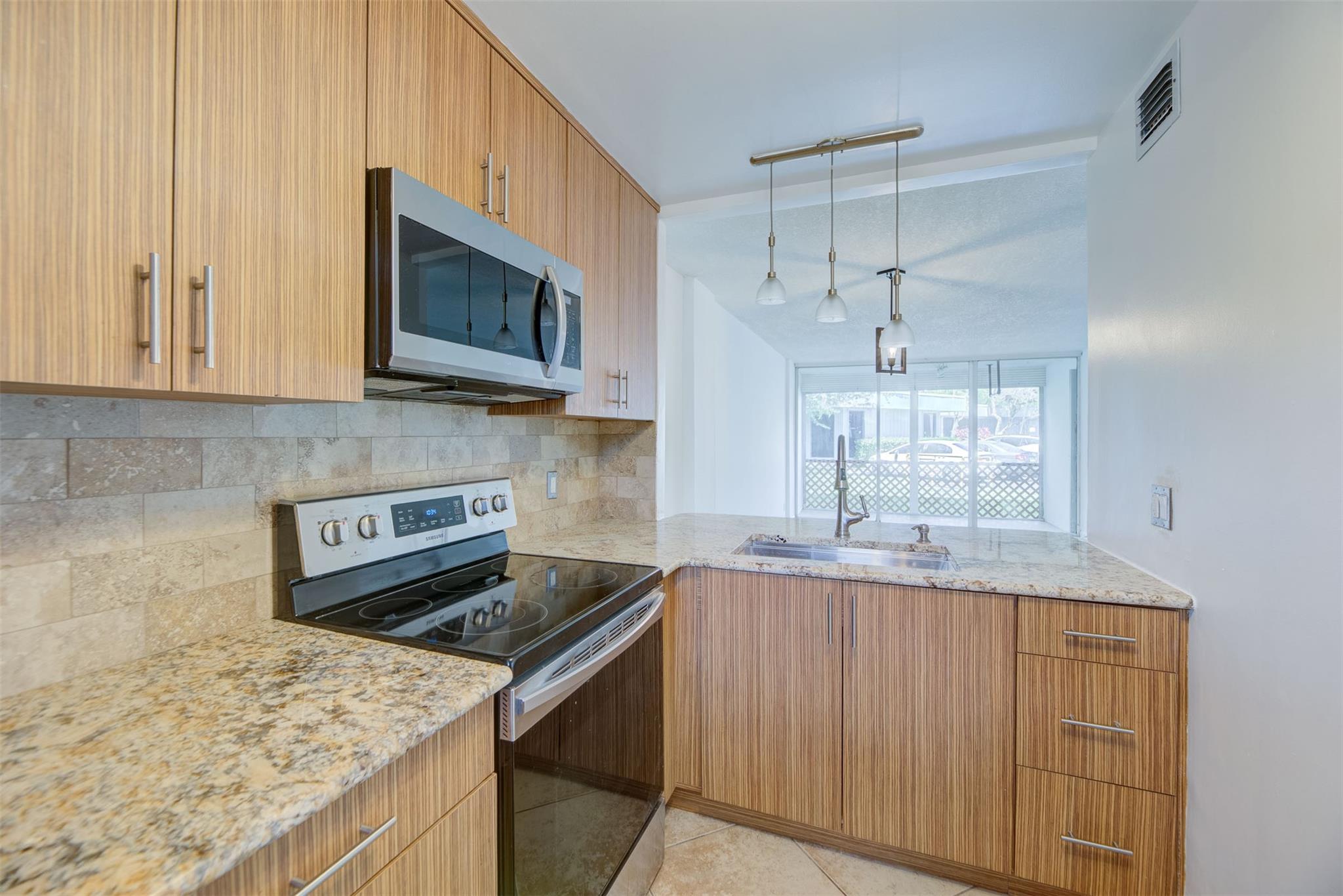 INVESTORS SPECIAL! Tenant in place until August 31, 2026. FIRST FLOOR 2/2 condo in East Oakland Park area with full reserves and no assessments! Two pets no weight limit. This first-floor condo has two spacious bedrooms and two updated baths, hurricane windows and tankless water heater. The open concept living area is flooded with natural light from sliding glass doors that lead to a private patio. Inside, the updated kitchen boasts modern finishes, stainless-steel appliances, granite countertops, ceramic tile floors and designer fixtures open to the dining and living areas. Each bedroom is designed with comfort in mind, offering ample closet space and en-suite access to the updated bathrooms. Clubhouse locker rooms each have steam room and sauna! Like a single-family home for $175K!
