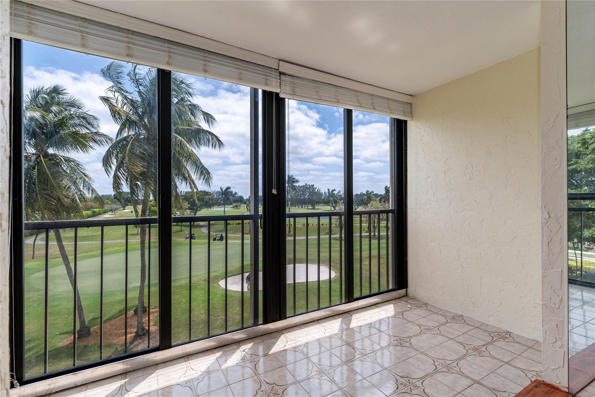 GOLFER'S DELIGHT! 4th FLOOR PANORAMIC PGA GOLF VIEW! 1BR/1.5BA featuring open tiled kitchen w/maple cabinetry, SS appliances & waterproof vinyl plank flooring. IMPACT windows & front door. Newer AC. New vanities in bathrooms w/ designer knock-down walls. Attractive laminate oak flooring. Updated shower in master bathroom. Enclosed balcony blocks all noise. Recreation Lease PAID IN FULL! FREE golf (except cart fees) on two 18 hole courses (PGA & Par3); Amenities include Restaurant, Billiard Room, Bbq/Picnic Area, Clubhouse, Courtesy Bus, Exercise Room, Heated Pool, Library, Putting Green, Sauna, Shuffleboard, Tennis, Pickle Ball, Vehicle Wash Area, Electric Car Charging Station. Close to shops, dining & highways. 15 min. to the beach. Association says 55+ age required; EXCELLENT!