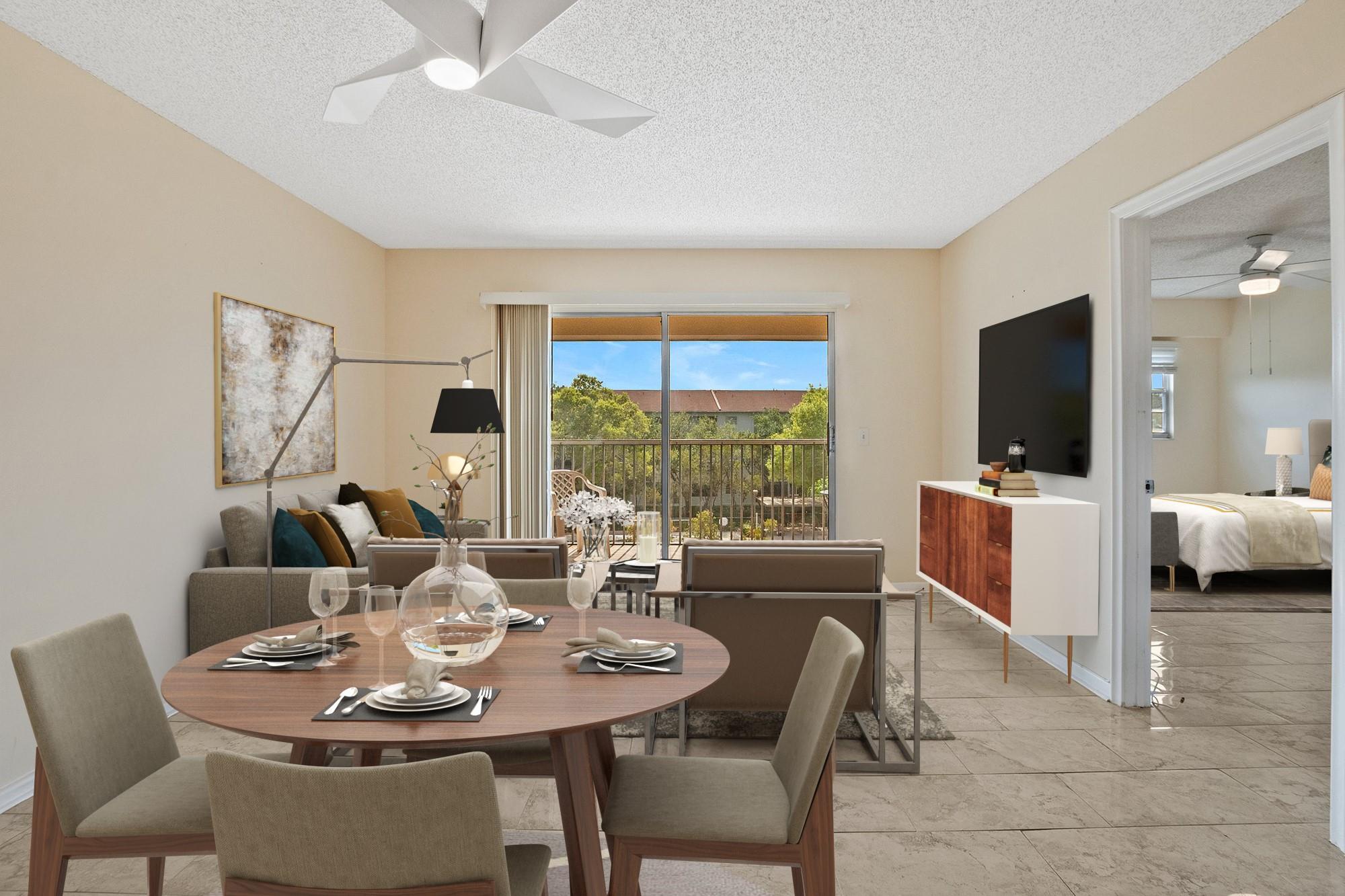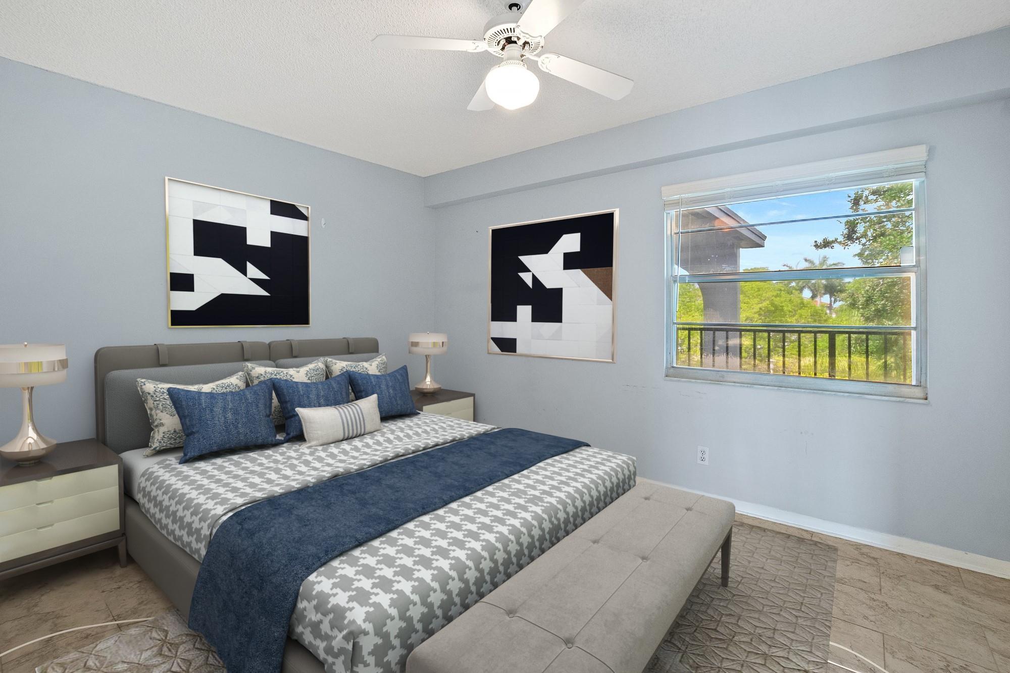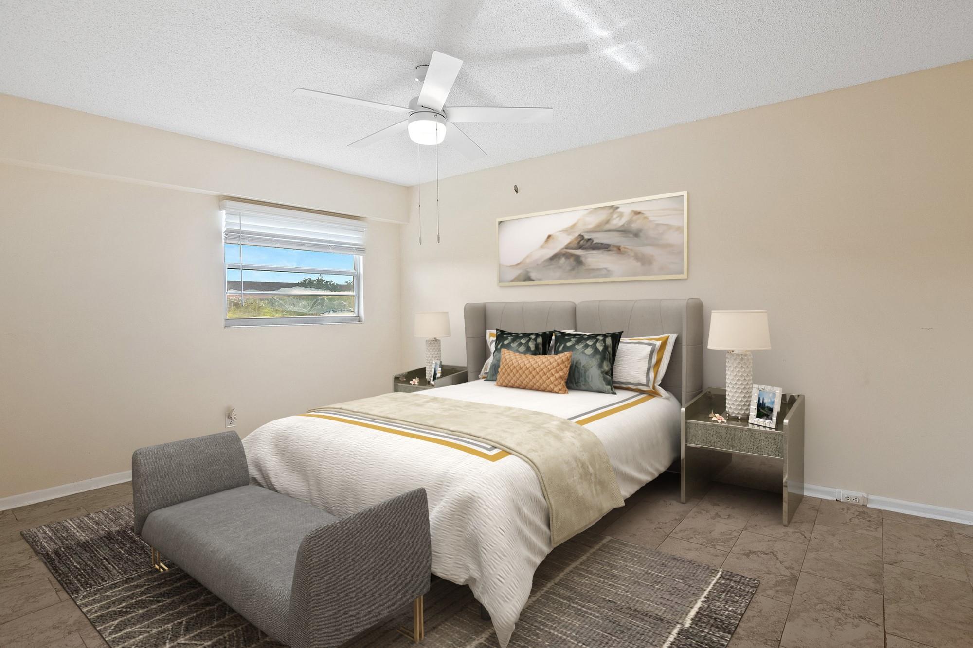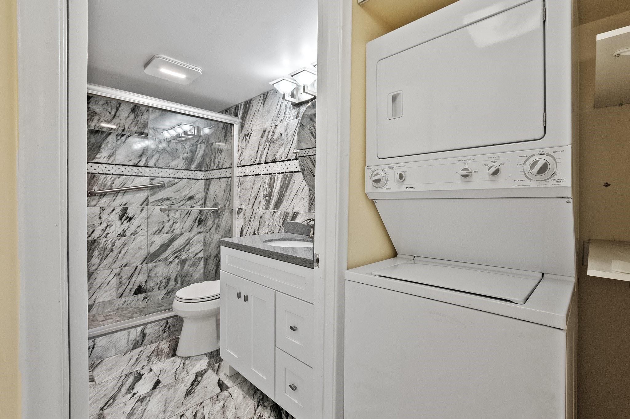 INVESTOR FRIENDLY! Remodeled 2 bedroom 2 bath apartment with washer/dryer in unit. Updated floors and bathrooms. Owners' bedroom has large built out walk-in closet and bonus a/c unit in bedroom. Tankless water heater keeps your electric bill low. Building exterior recently painted and roof replaced last year, NO UPCOMING ASSESMENTS! Century Village is a resort style amenities community for seniors that includes resort style clubhouse, indoor and outdoor pools, theater, fitness gym, tennis courts and more. Your monthly dues incl. water, cable, internet, and access to all amenities. Association is a 55+ community & requires minimum 650 credit score.