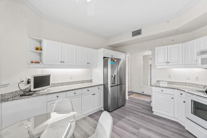 Boca Pointe, La Paz Community. A Very rare opportunity to have available a corner Penthouse unit fully furnished or unfurnished, turnkey, the property has been newly updated kitchen and furnished with an excessive number of windows that allows a ton of natural light throughout the unit. Kitchen and main areas all have luxury vinyl flooring. The condo has a Glass-enclosed patio with an additional 400 sqft of living space. There is a clubhouse with 2 pools and there is an optional Boca Pointe membership for the new homeowner.