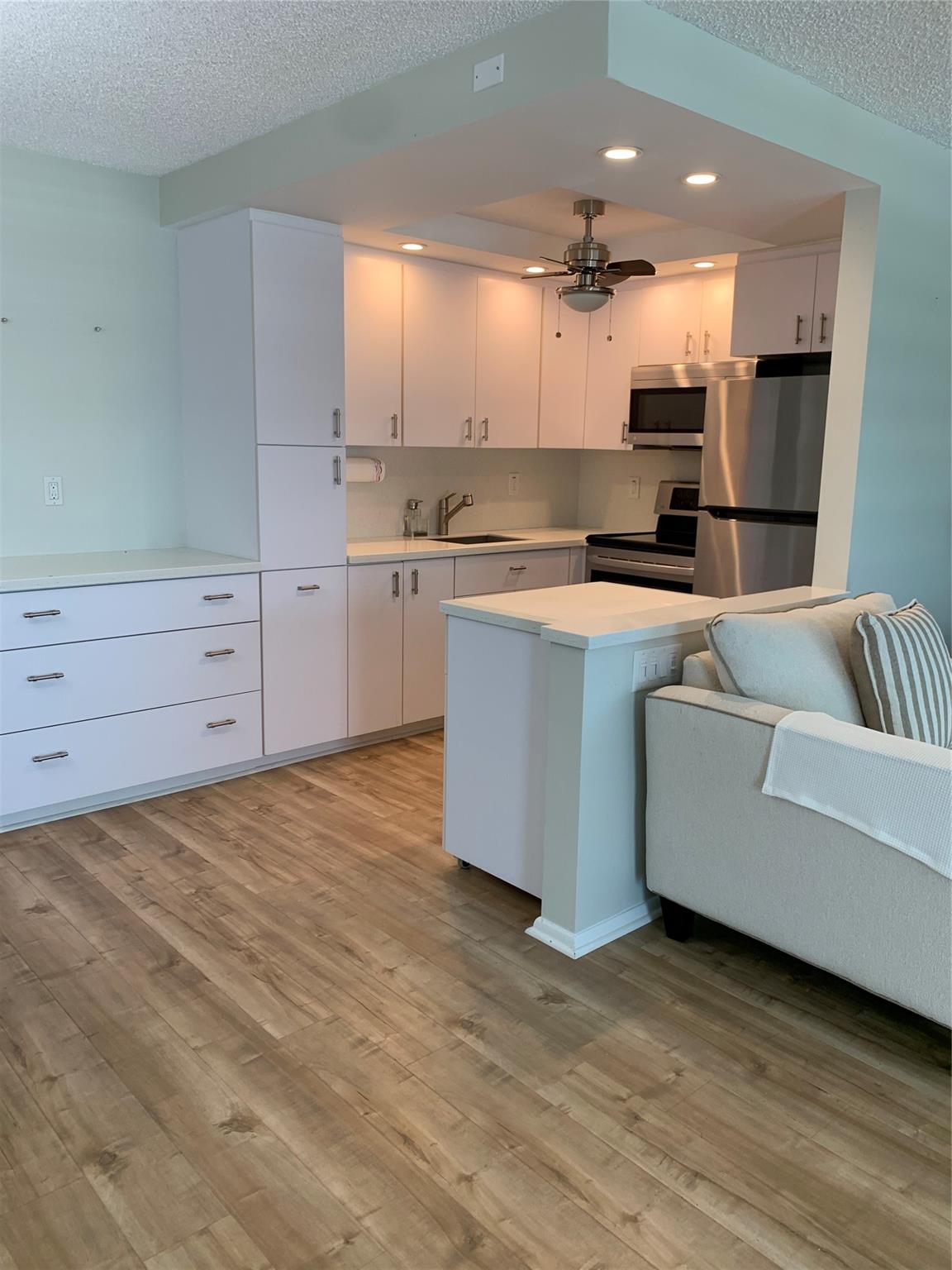 Beautiful,Charming. Completely Renovated One Bedroom,Bath &Half Bath Condo. The Open floor plan Blends Seamlessly with its Magnificent Color Scheme. You'll Love the Custom Kitchen Cabinetry and Stainless Steel Appliances and Beautifully Designed Full Bathroom in this Condo. Wood plank flooring runs throughout the Living area through to the Bedroom. The Sunroom with its Magnificent Custom Wall of Hurricane Windows is a breathtaking experience, Meticulously Adorned with Custom Sun Draw Shades and Custom Drapes. Enjoy an Everyday at the Berkshire pool Located Right behind this Condo. Condo is located only foot steps from the Clubhouse and all activities. CVE is an Active 55+Community offering,Free Movies,Free Buses, Pools,Tennis, Shuffle Board& other Activities. Condo is Partially Furnished.