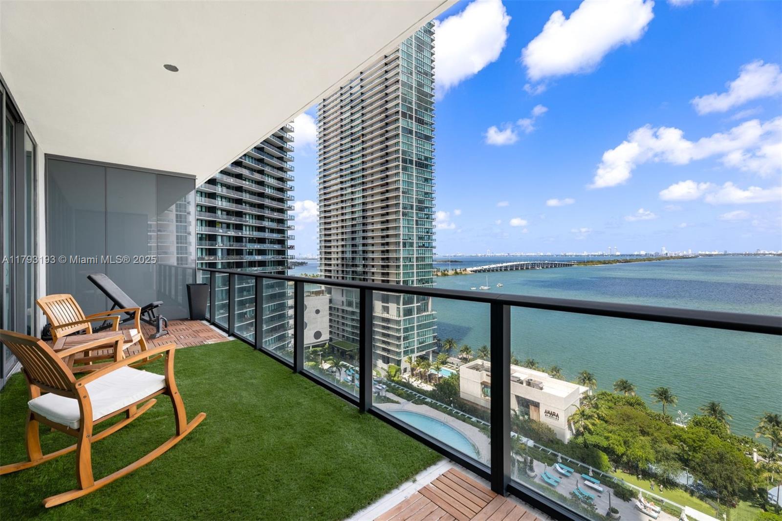 Spectacular waterfront residence w/ modern finishes & breathtaking views of Biscayne Bay at the acclaimed Gran Paraiso by Piero Lissoni. This contemporary 1 bed / 2 full bath unit boasts 1,075 SF of interiors, floor-to-ceiling windows & an expansive outdoor terrace overlooking the bay. Kitchen features top-tier appliances & large center island. Principal bedroom w/ access to bayfront terrace & large spa-like bathroom w/ soaking tub, separate standing shower, dual sinks & walk-in closet. Enjoy living in the heart of Edgewater w/ direct access to shops, restaurants, fitness studios, parks, Miami Design District, Wynwood & easy I-95 access to Miami Beach. Full-service amenity building w/ luxury pool, gym, spa, bowling alley, indoor golf simulator, valet services, 24-hour security & more.