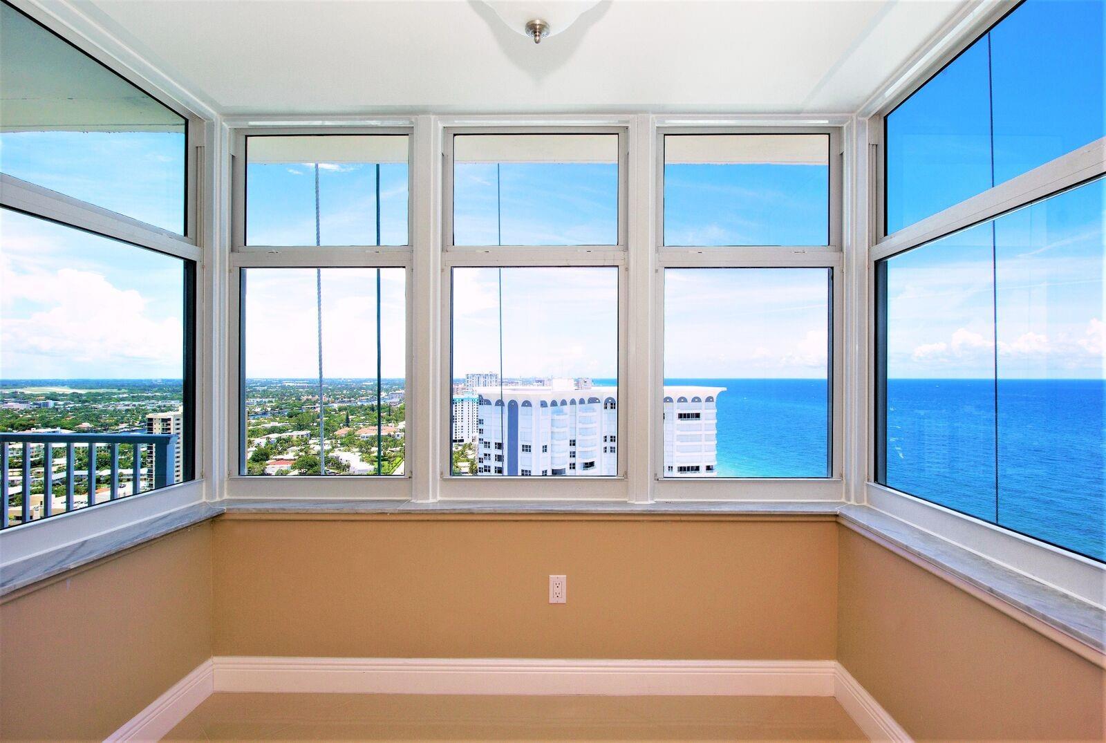 MUST SEE! Upgraded luxury Penthouse residence with Ocean and Intercoastal views from all the windows. Enjoy Contemporary modern living with quality finishes, tile throughout the living room dining and kitchen, split floor bedrooms and large walk-in closets. Penthouse features Impact windows, quarts countertops, tiled backsplash, wood kitchen cabinets and large kitchen island that can be used for entertaining quests and casual dining. Renaissance building is an amazing beach front residence with private access to the beach, and beachfront barbecue. Building offers resort level amenities including top floor sky lounge with breathtaking views of the beach and the Intercoastal that is a perfect place for private parties. Remodeled heated pool and spa, fully equipped gym and much more.