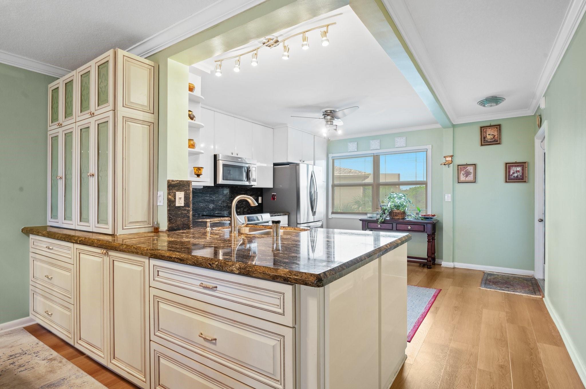 Beautifully renovated unit. Corner unit, panoramic views of the lake and golf course from you screened patio. Gorgeous updated kitchen with stainless appliances. Great amenities ,tennis, golf ,theater, gym,clubhouse golf and lots more. Great location!!!!
