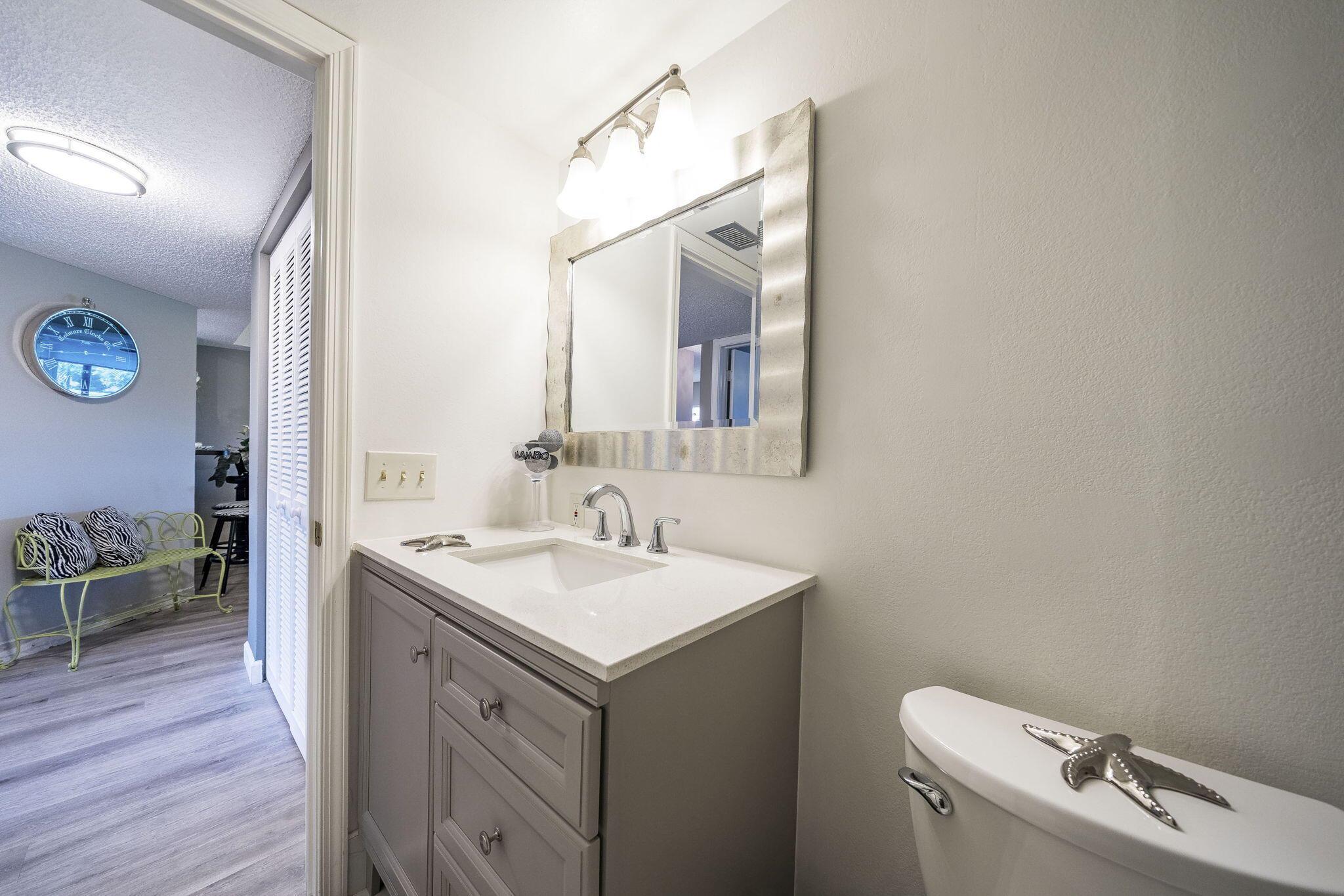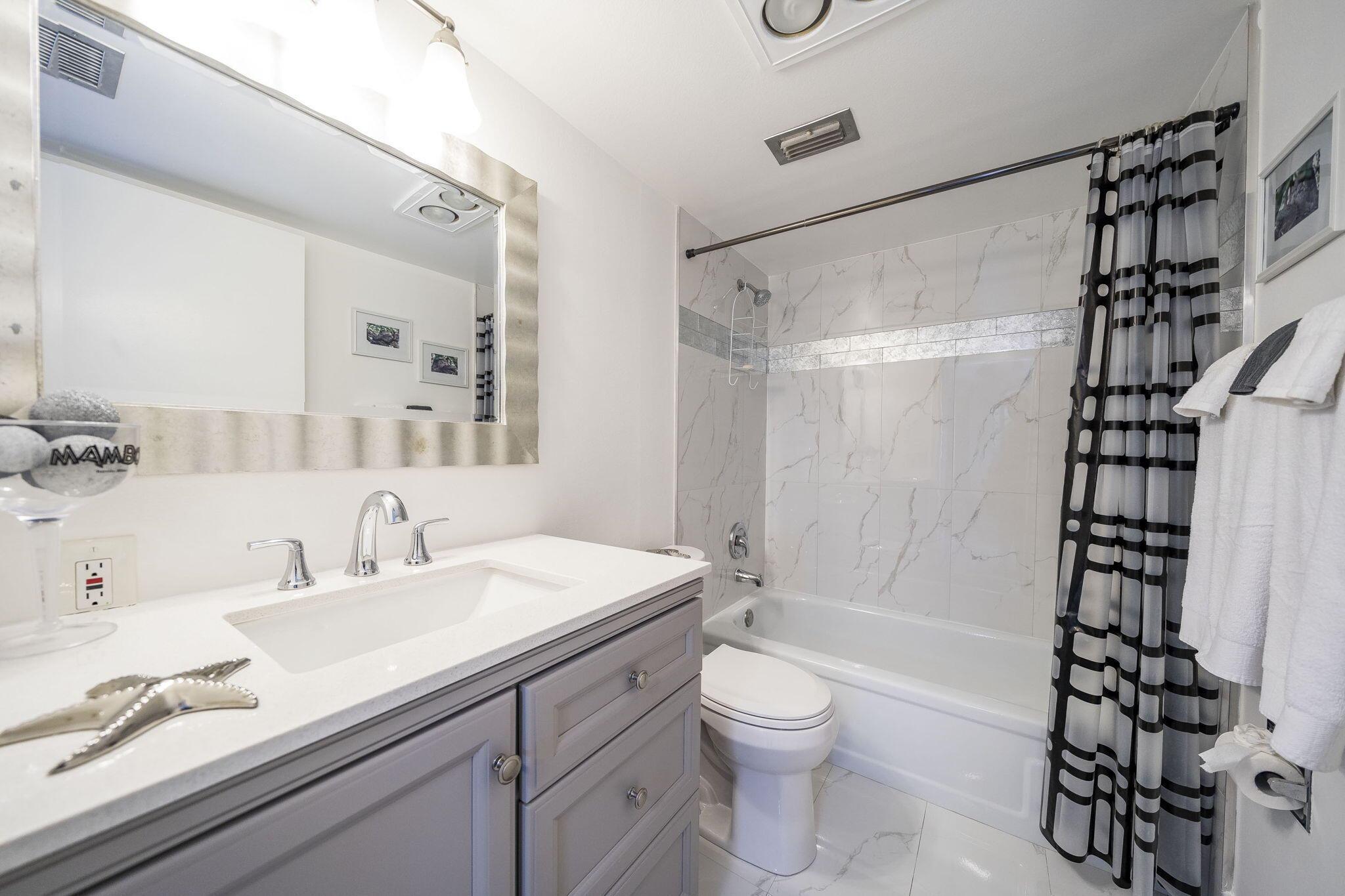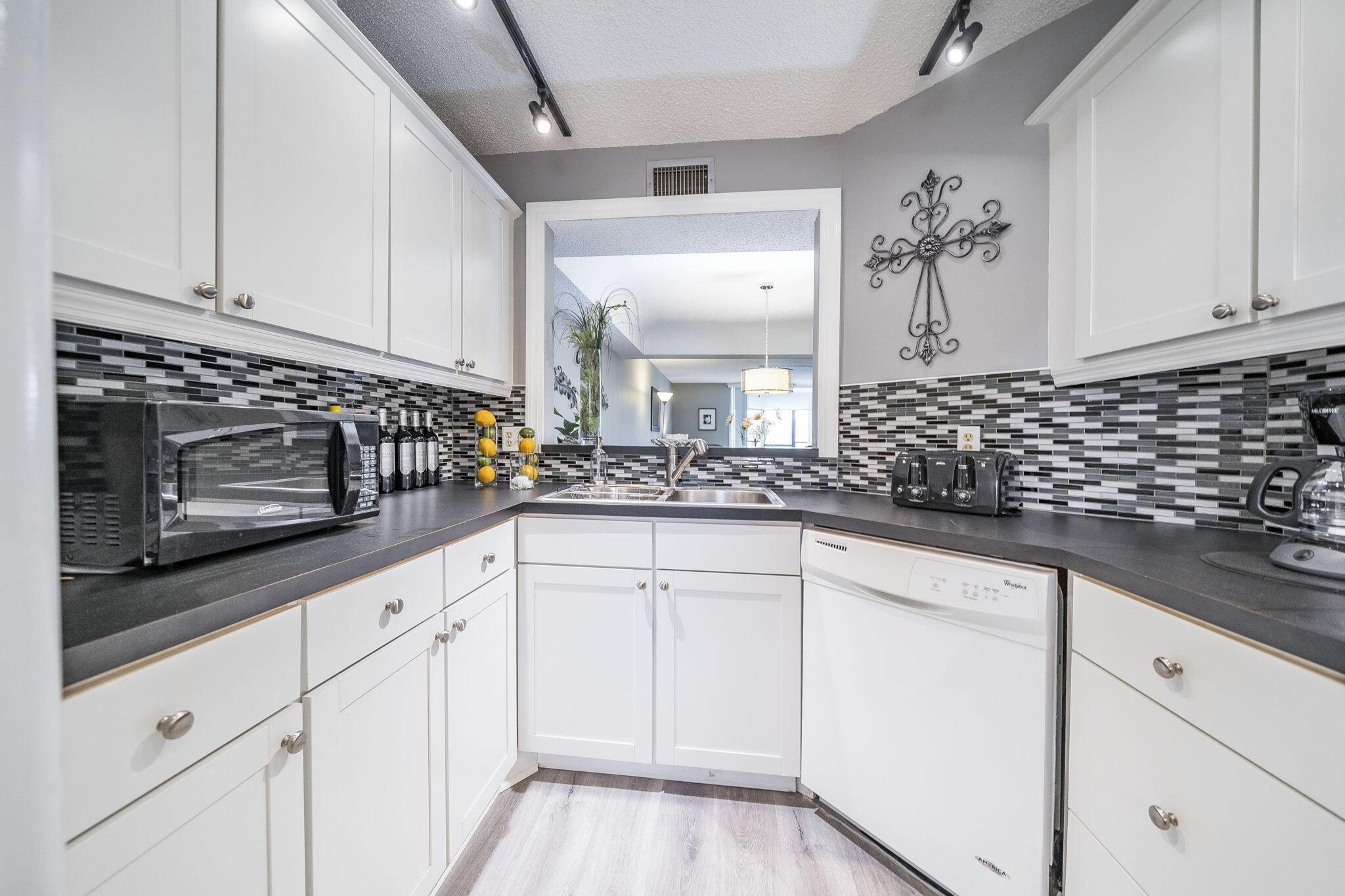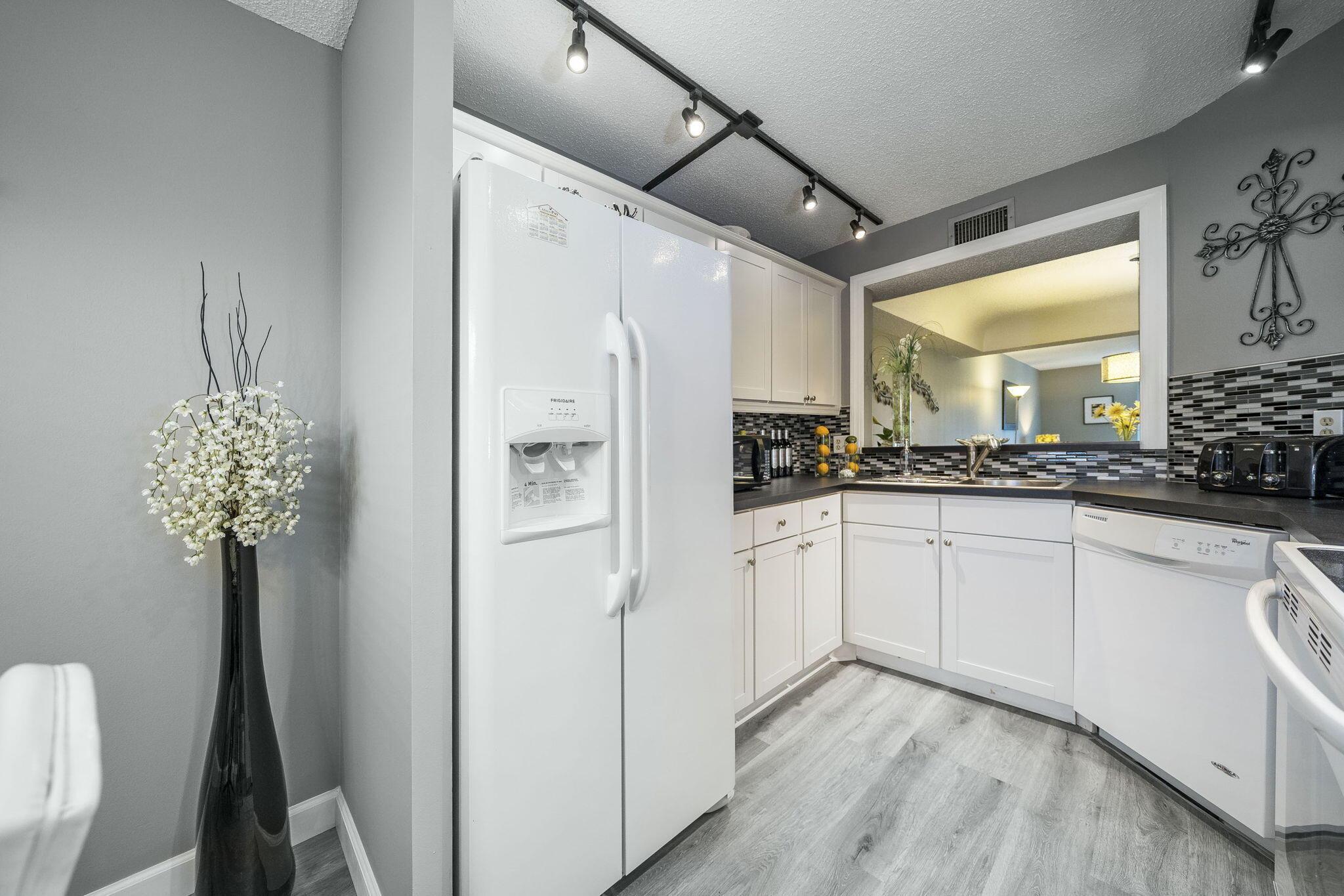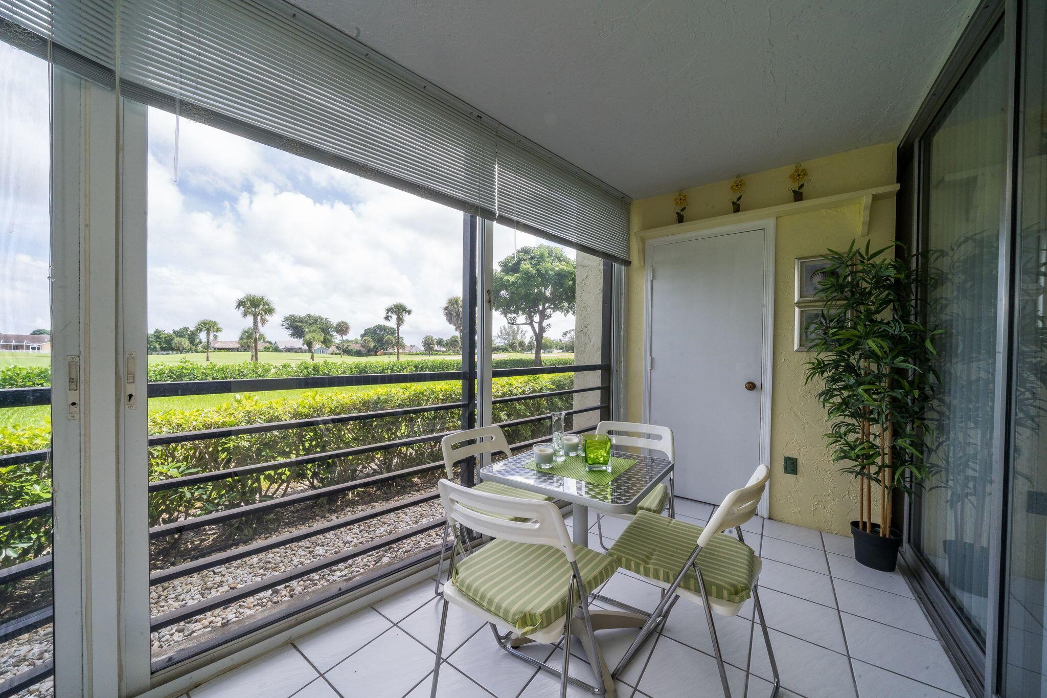 Gorgeous golf view to enjoy for the winter or all year! Ready now for quick closing! Enclosed patio with extra sliders to watch the golfers go by with your morning coffee or happy hour, use as extra room or open for the breeze! Updated first floor 2 BR/2 BA condo with modern furnishings (negotiable), upgraded cabinets, vanities, lighting, ceiling fans, high end vinyl plank flooring, Full size washer & dryer off patio. Covered carport in front of unit. Have fun at the community pool, tennis, pickleball, clubhouse, central fountain. Close to shopping, bus routes, major highways. Short drive to the beach. Milestone inspection completed for this building, seller paid assessment. COME HOME TO BOCA BARWOOD!