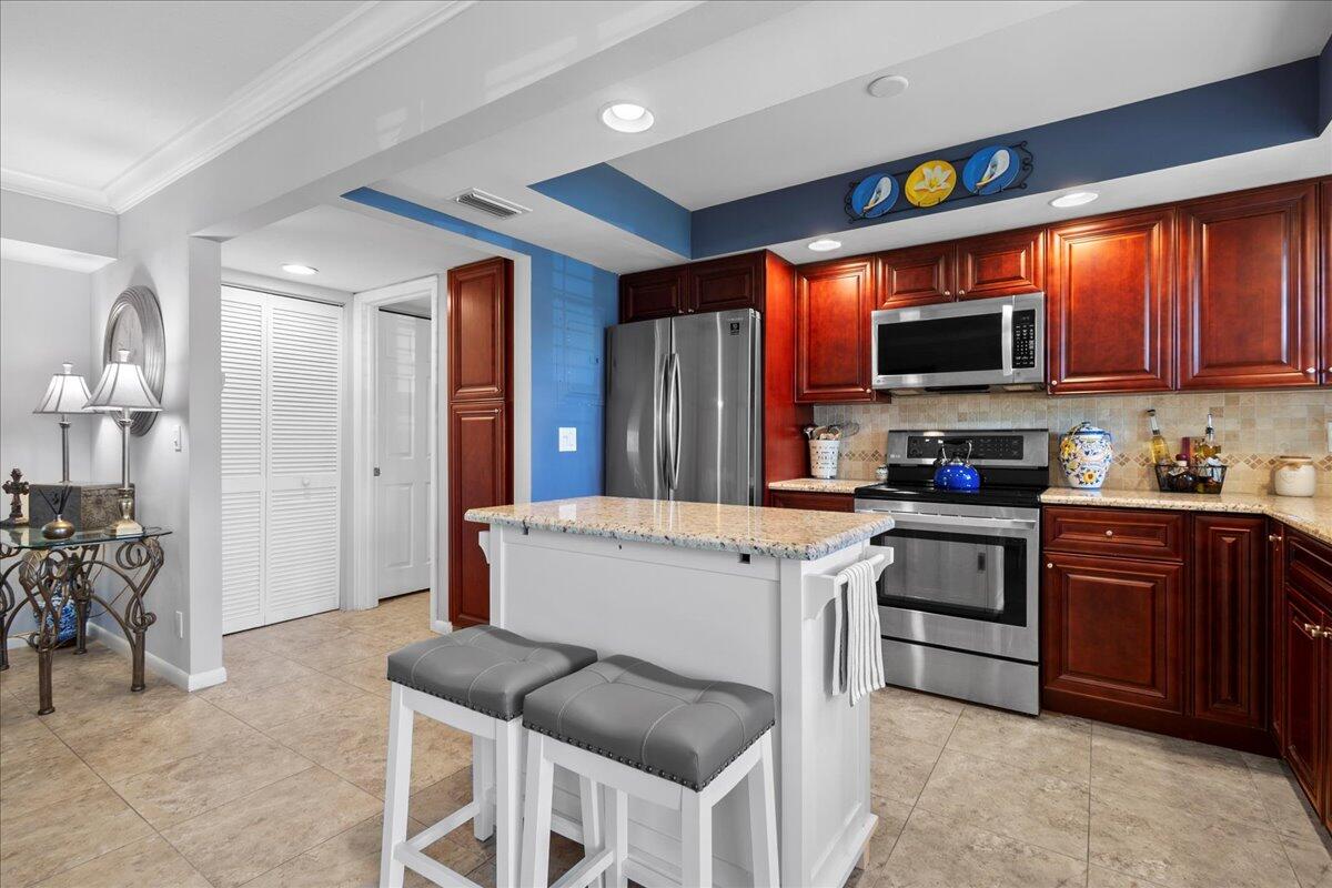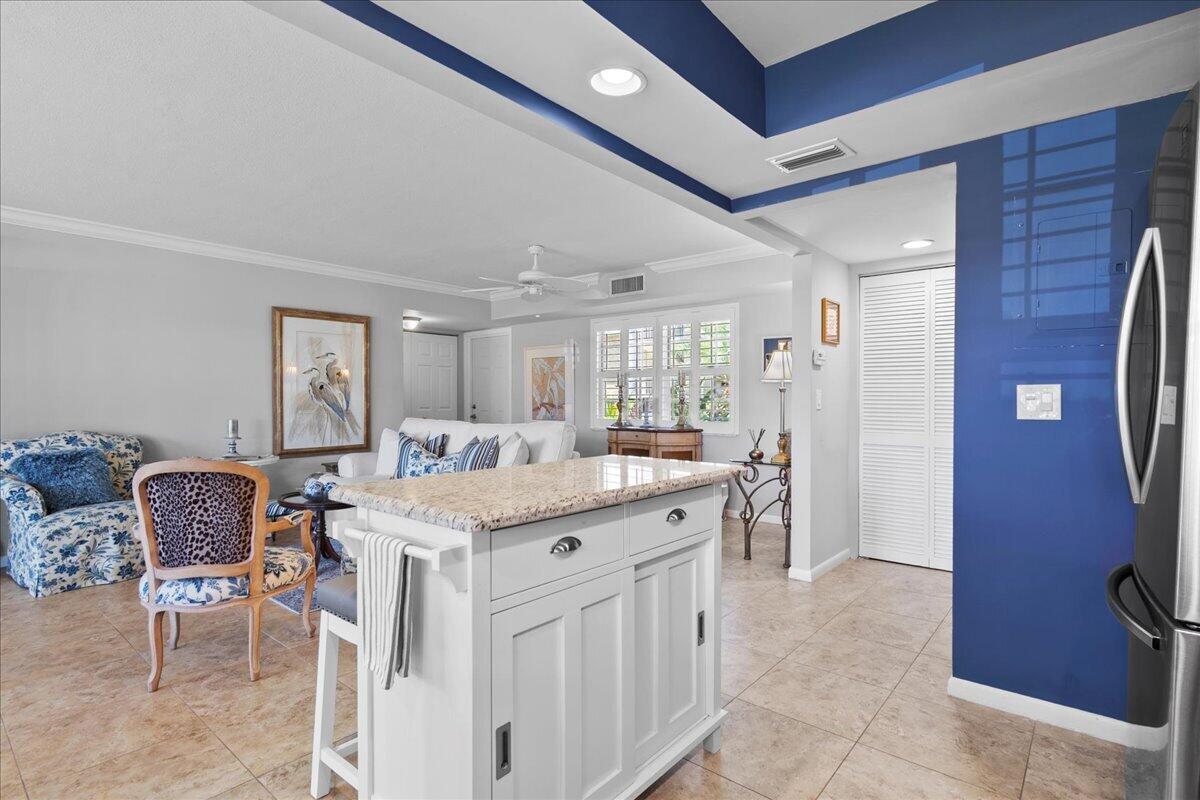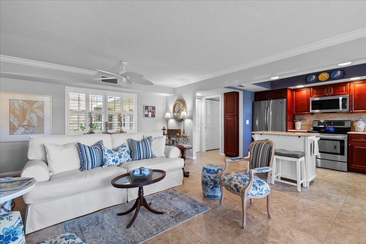 Beautifully updated 2 bedroom, 2 bath end unit in Tamberlane, a hidden gem in one of Palm Beach Gardens' most desirable and affordable 55+ communities. Just steps from upscale shops, restaurants, & cafes of PGA Commons, this first-floor condo offers a rare blend of style, privacy, and unbeatable location--all surrounded by million-dollar homes. From the moment you enter, you'll notice the attention to detail: neutral tile floors, an airy open layout, and an abundance of natural light. The remodeled kitchen features granite countertops, stainless steel appliances, & a spacious center island--perfect for cooking, casual dining, or gathering with friends. The living and dining areas flow seamlessly, creating a welcoming space that feels both relaxed and refined. The primary suite offers a