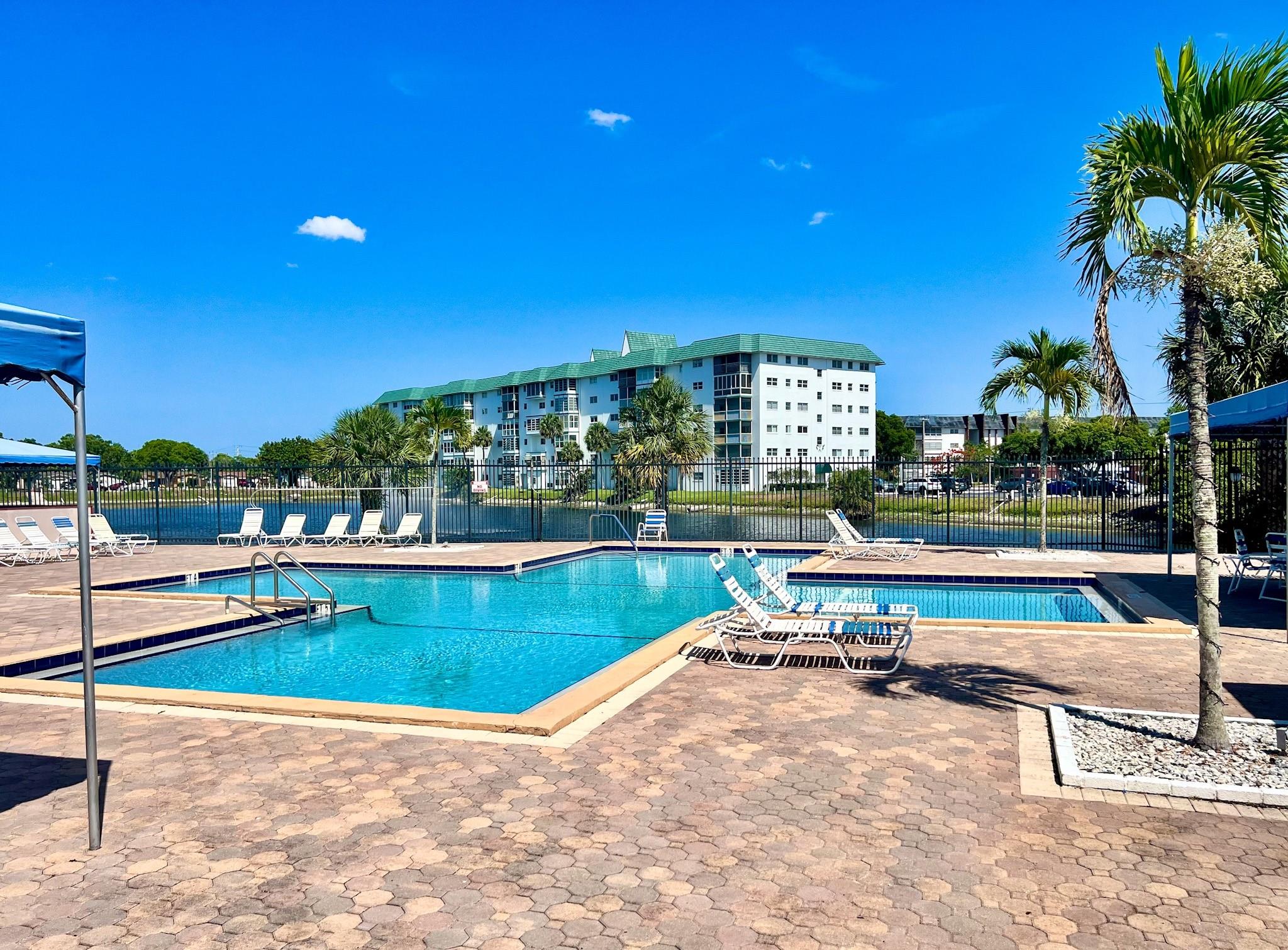 SPACIOUS *TOP 5TH FLOOR* TURN KEY 1-BED 2-BATH, 920 SQUARE FT. CONDO. RELAX AND ENJOY THE BREEZE WITH *MAGNIFICENT WATER VIEWS* OF THE LAKE AND AMAZING SUNSETS. KITCHEN INCLUDES STAINLESS APPLIANCES AND GRANITE COUNTERTOPS. HUGE EN-SUITE BEDROOM WITH WALK-IN CLOSET AND BUILT-IN VANITY AREA. UPDATED FULL AND HALF BATHS. NEW SCREENED BALCONY. ASSIGNED PARKING SPACE AND PLENTY OF GUEST PARKING. LOCATED IN BEAUTIFUL CASTLE GARDENS. OUTSTANDING CLUBHOUSE AND AMENITIES INCLUDE HEATED POOL, SAUNA, BILLIARDS, BOWLING ALLEY, GYM, SHUFFLEBOARD, BBQ AREA, SECURITY, COURTESY BUSES AND MUCH MORE! GREAT LOCATION CLOSE TO HIGHWAYS, RESTAURANTS, SHOPPING. PERFECT VACATION OR PRIMARY HOME. ACTIVE 55+ COMMUNITY. ESA ANIMALS WELCOME. LOW HOA FEES!!.