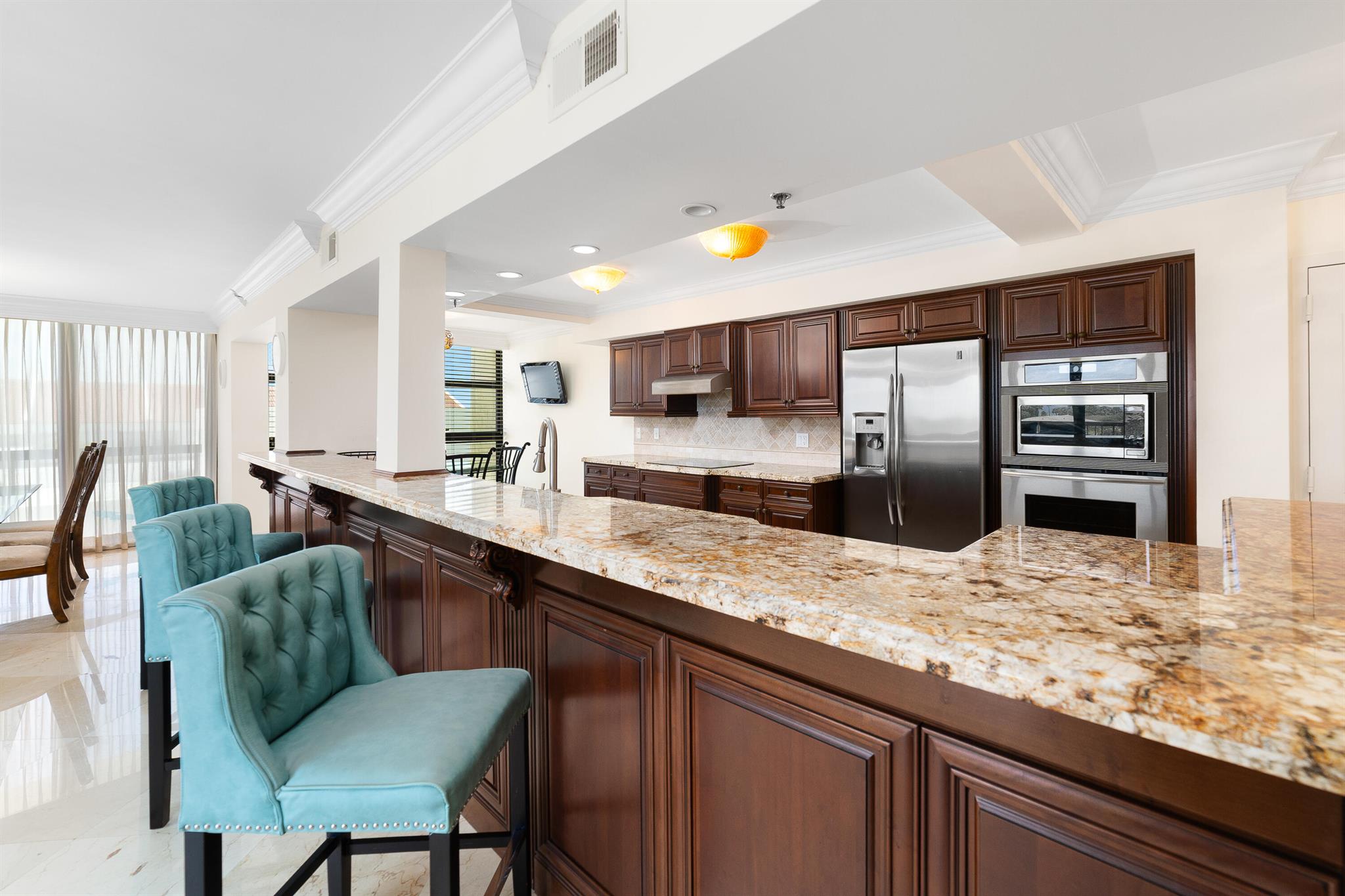 This well-appointed three-bedroom, southeast corner condo offers over 2,000 square feet of bright, airy living space in an exclusive Highland Beach community along scenic A1A. Enjoy stunning views of the ocean, marina, and pool, along with direct access to a private oceanfront beach club. The thoughtfully designed open floor plan seamlessly connects the expansive living room, dining area, and kitchen, creating an ideal setting for entertaining or everyday relaxation. Floor-to-ceiling impact windows fill the home with natural light and open to a wraparound balcony that showcases the surrounding coastal scenery. The gourmet kitchen is equipped with an oversized island, abundant cupboard space, wall oven and microwave,