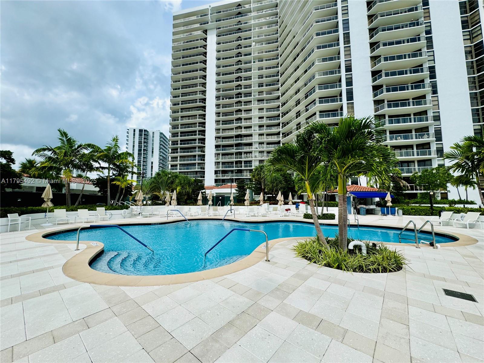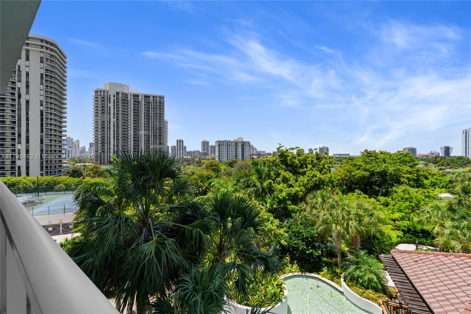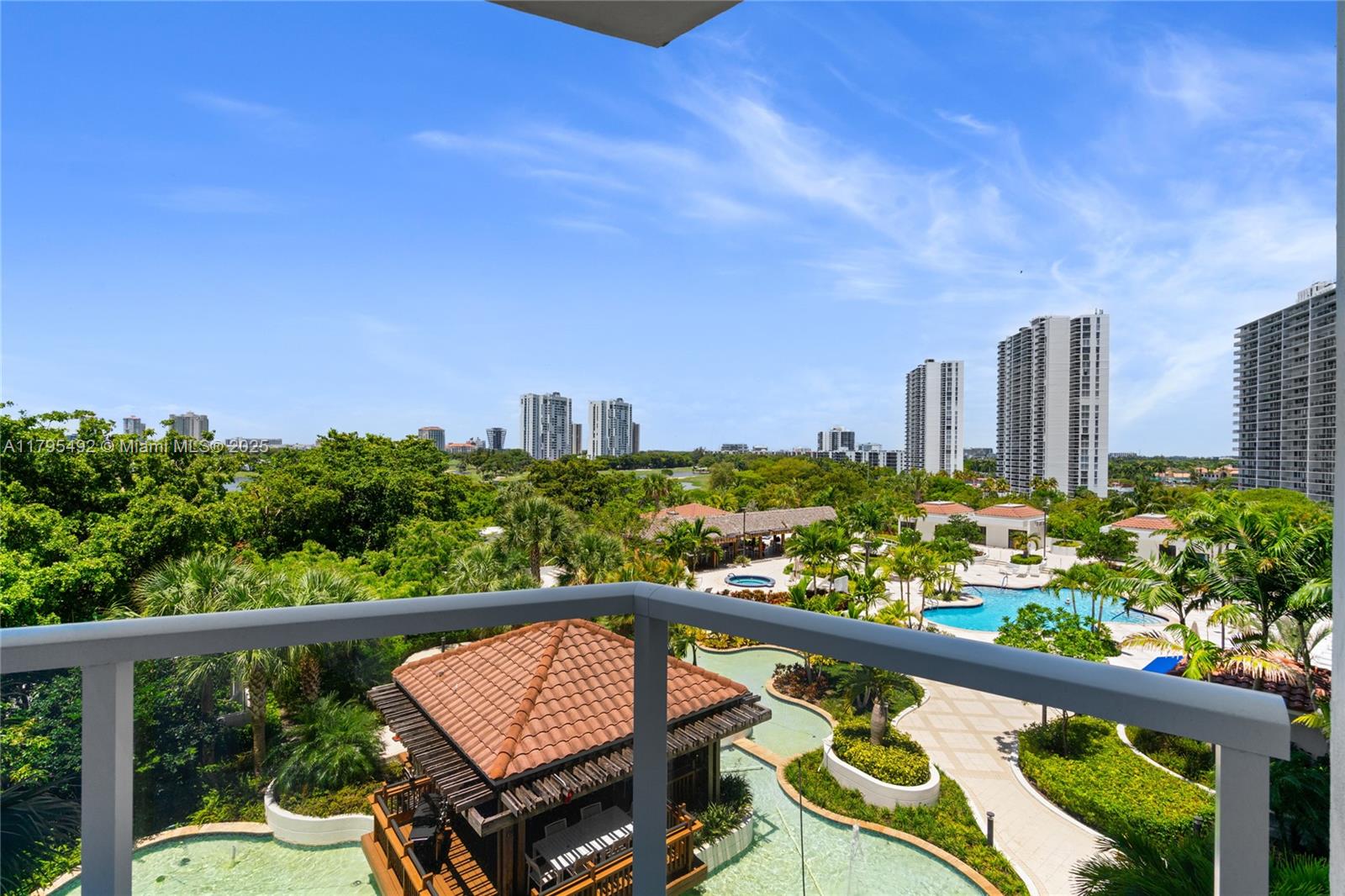 Stunning 2-bed, 2-bath on a low floor with lush garden and partial water views from a spacious balcony—perfect for morning coffee or sunsets. Features an open-concept layout with floor-to-ceiling windows, sleek renovated kitchen, and split-bedroom design. Glass balcony accessible from every room. Enjoy top-tier amenities: 2 pools, café, market, movie theater, gym, sauna, spa, nail salon, party rooms, kids' playroom, library, tennis & racquetball courts. Dine at the newly opened private clubhouse restaurant overlooking the Intracoastal. Prime Aventura location near mall, dining, parks & golf. Tenant occupied. Offered furnished or unfurnished. Investor opportunity—package deal with units #511 & #909!