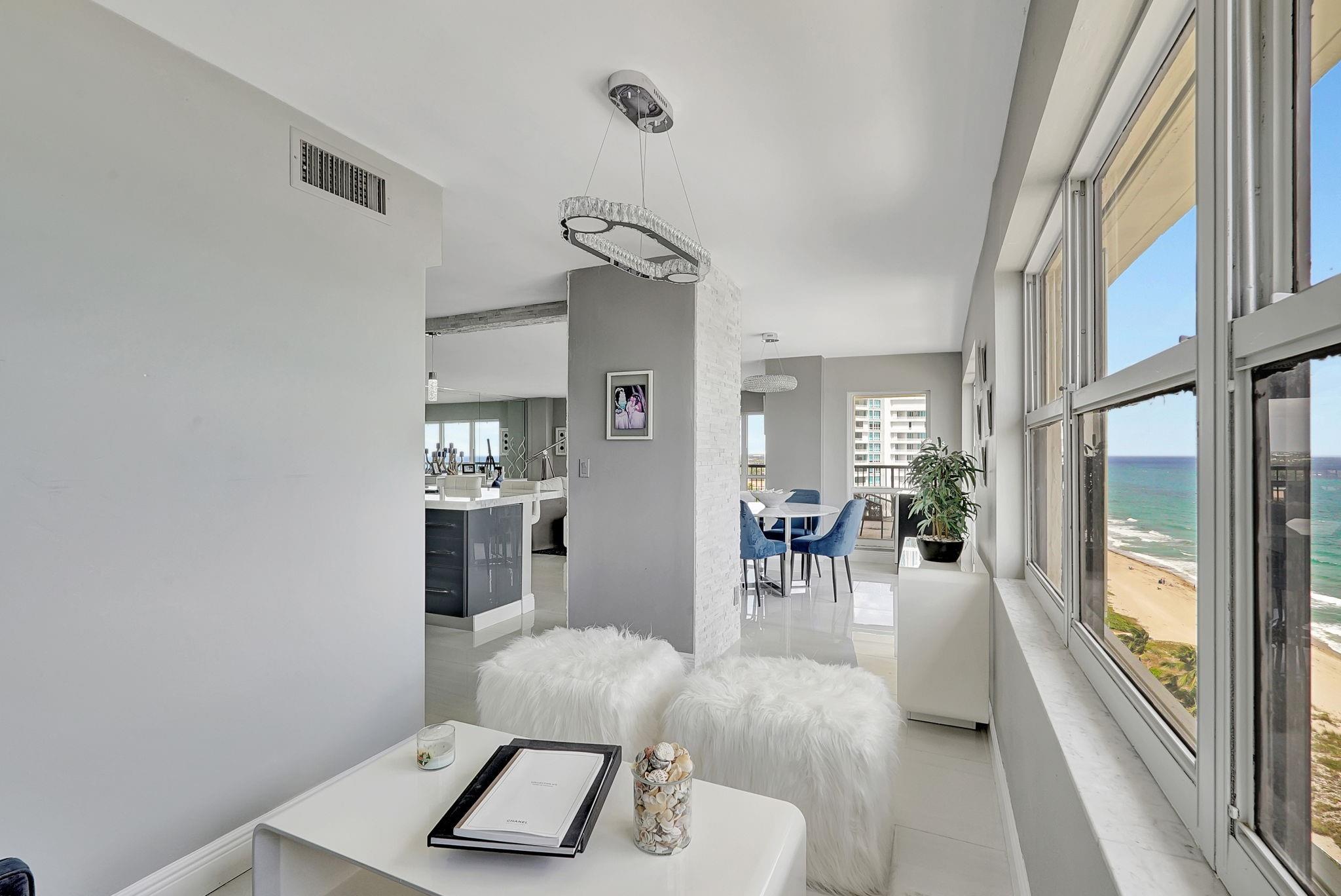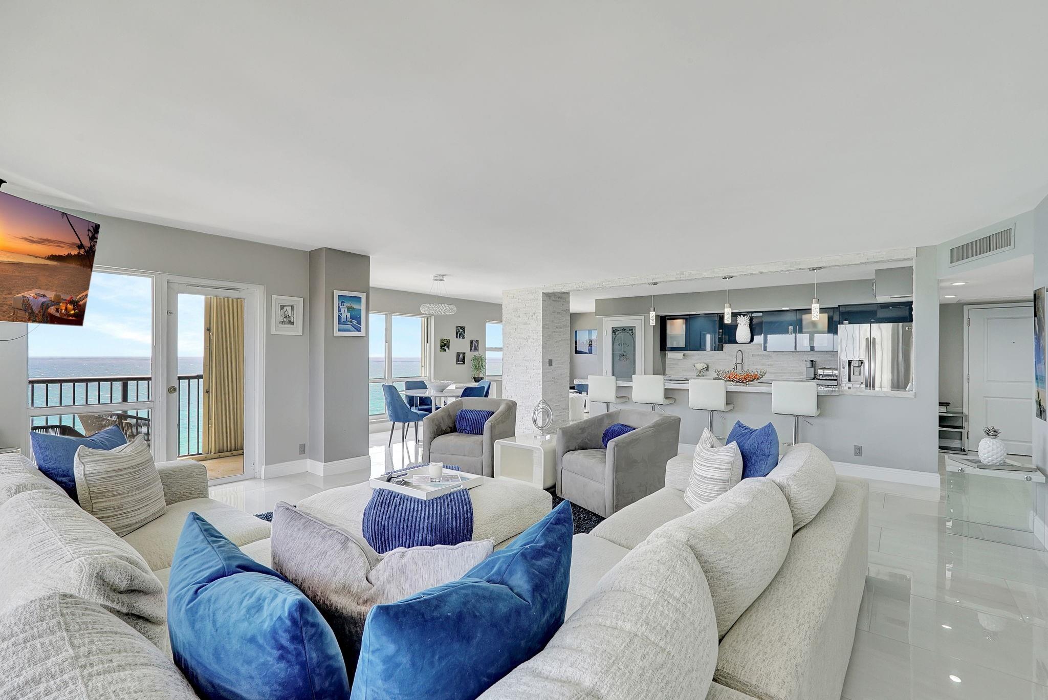 Welcome to this spectacular 3bedroom, 2.5 bath luxury penthouse perched directly on the beachfront—where sweeping ocean views & elegant modern updates define everyday living. This residence boasts an open-concept layout flooded w/natural light & a seamless flow between indoor/outdoor spaces. The fully renovated Diemme Cucine Italian kitchen w/quartz countertops, Italian style bathroom cabinetry & ocean views from every bedroom offer upscale comfort w/timeless style. Unobstructed views of the coastline from your private balcony—perfect for morning coffee or sunset cocktails. W/ over $130k in special assessments already paid, enjoy worry-free ownership in one of the area’s most desirable buildings. Full-time residence or high-end investment this turnkey coastal gem delivers on all fronts